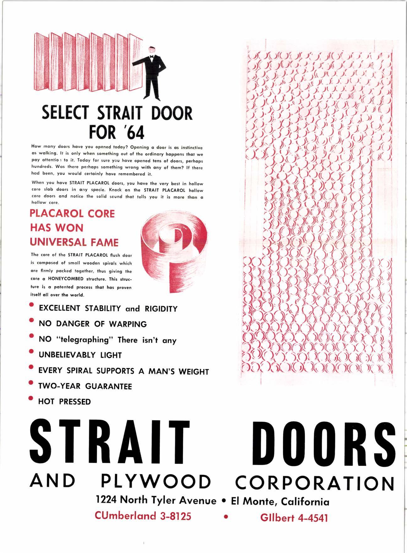 RS D00 CORPORA El Monte, Cqliforniq Gllbert 4-4541 o o STRAIT PLYWOOD 1224 North Tyler Avenue CUmberlond 3-8125 TION AND