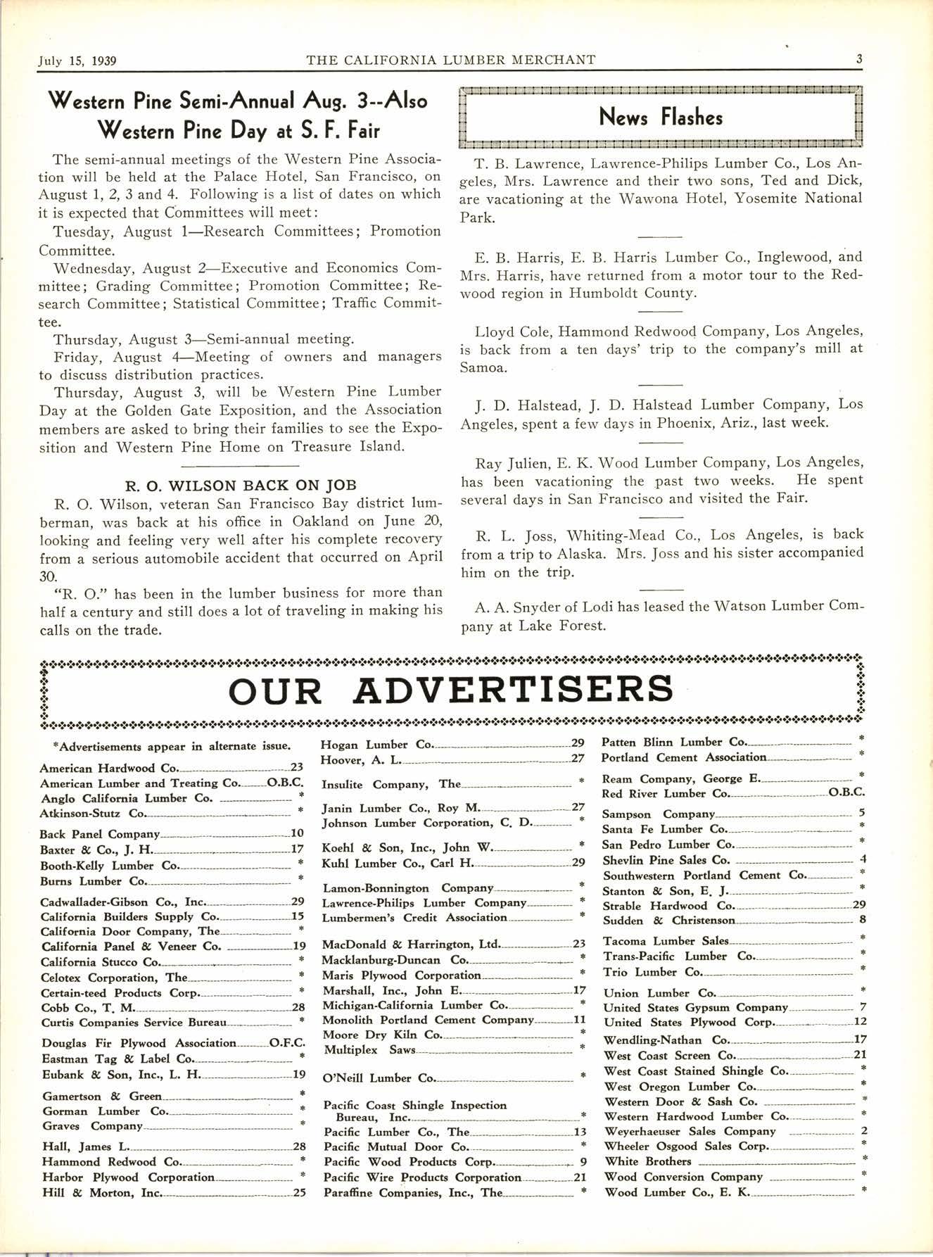 R. O. Wilson, veteran San Francisco Bay district lumberman, was back at his office in Oakland on June 20, looking and feeling very well after his complete recovery from a serious automobile accident that occurred on April 30.