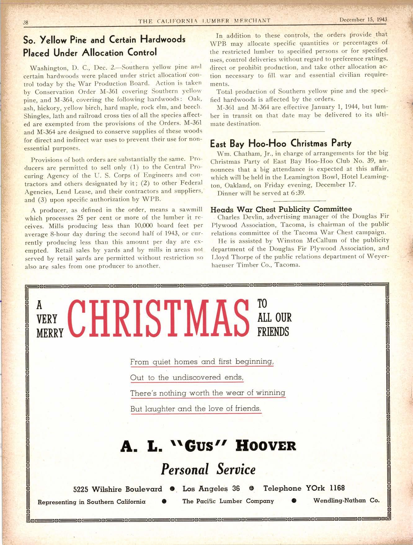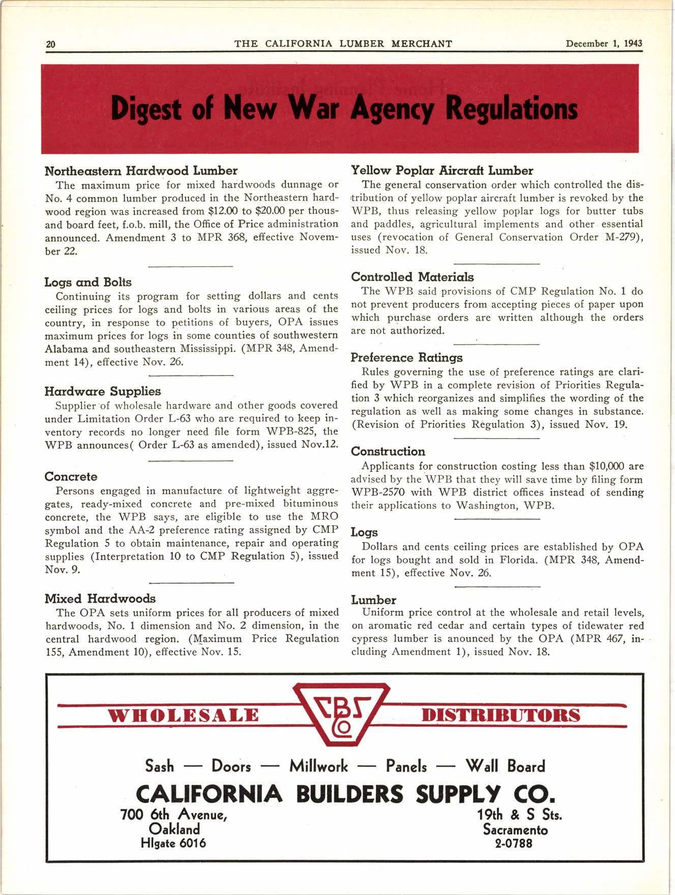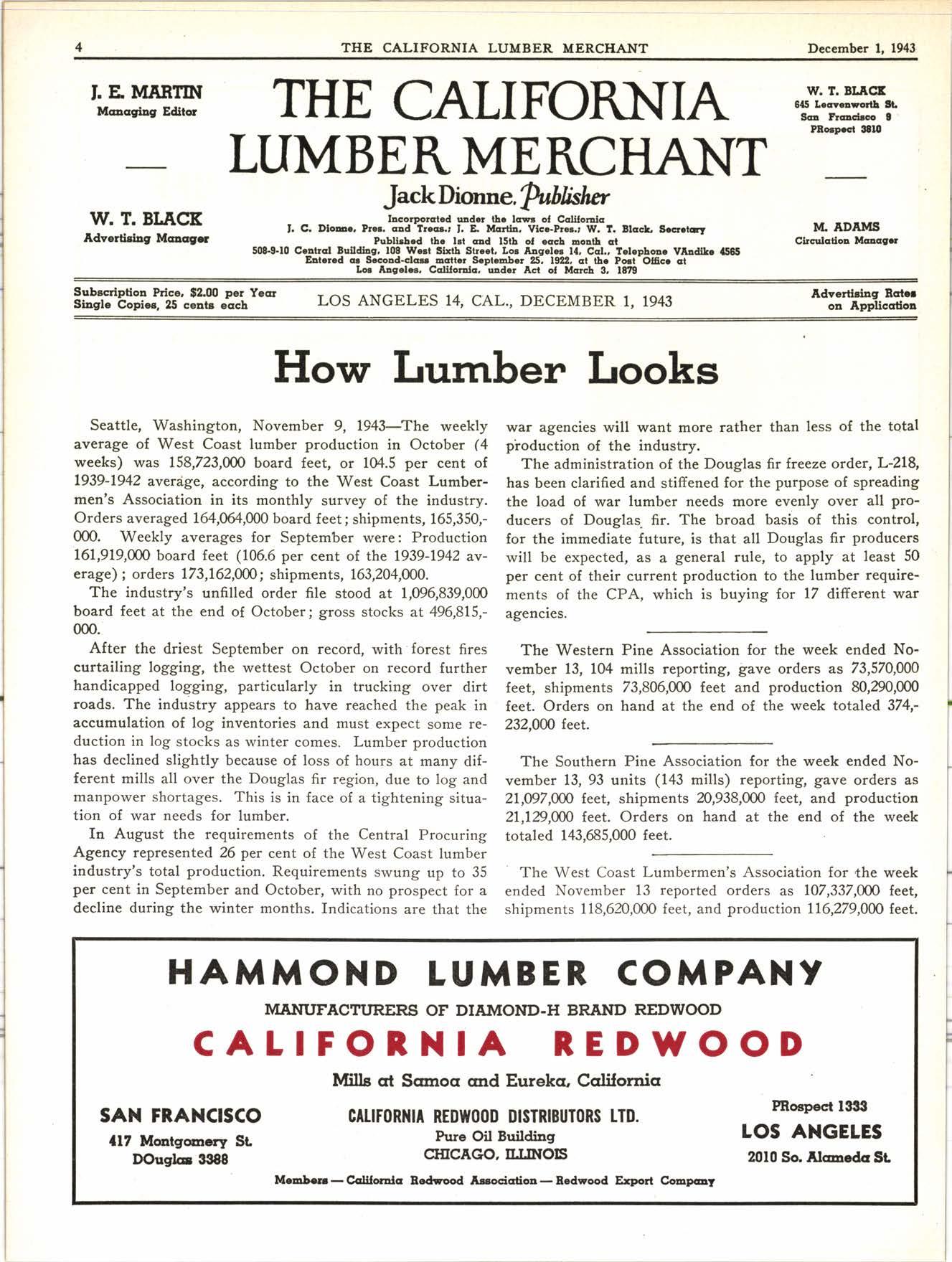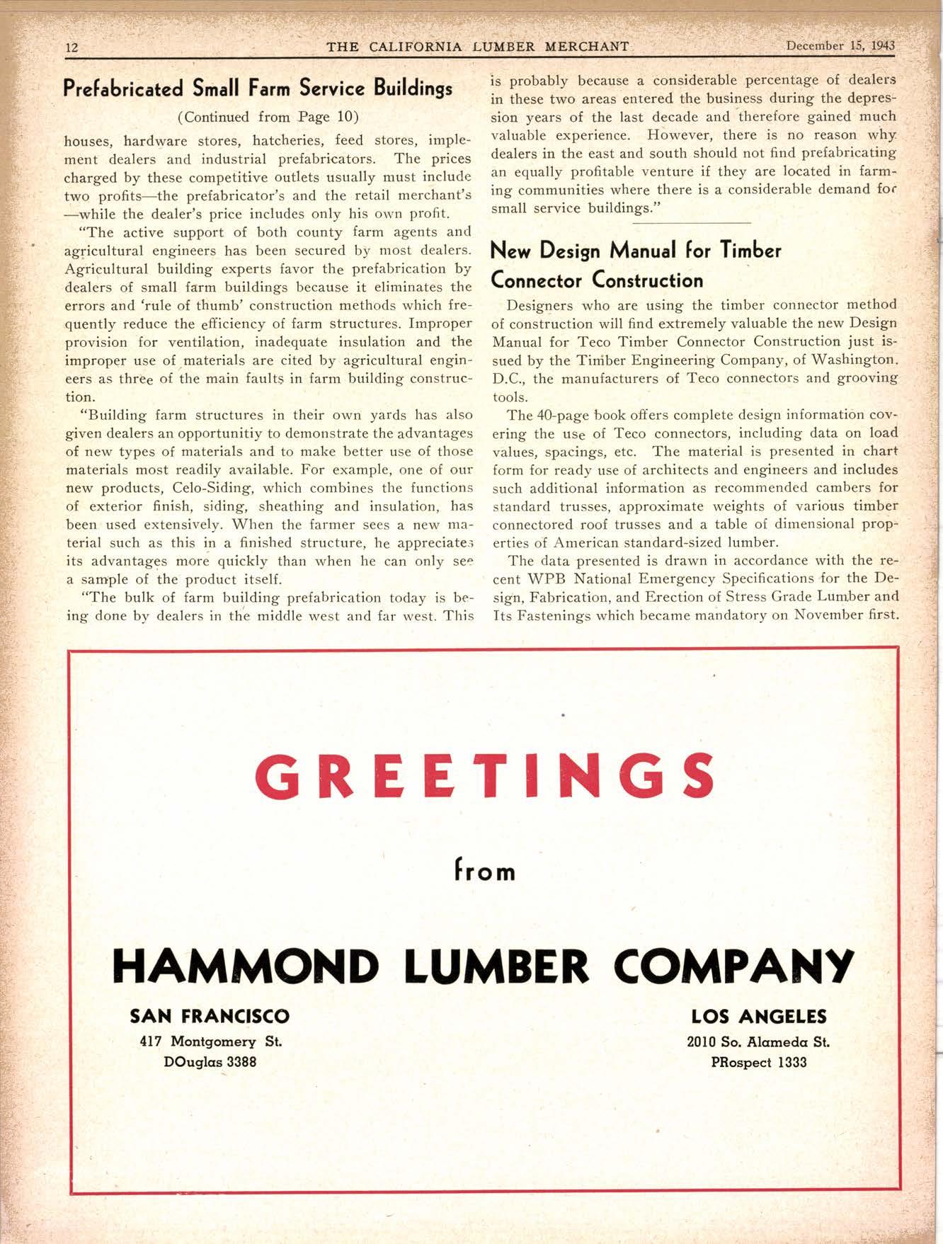 THE CALIFORNIA LUMBER MERCHANT December 15. 1943 78 w s w