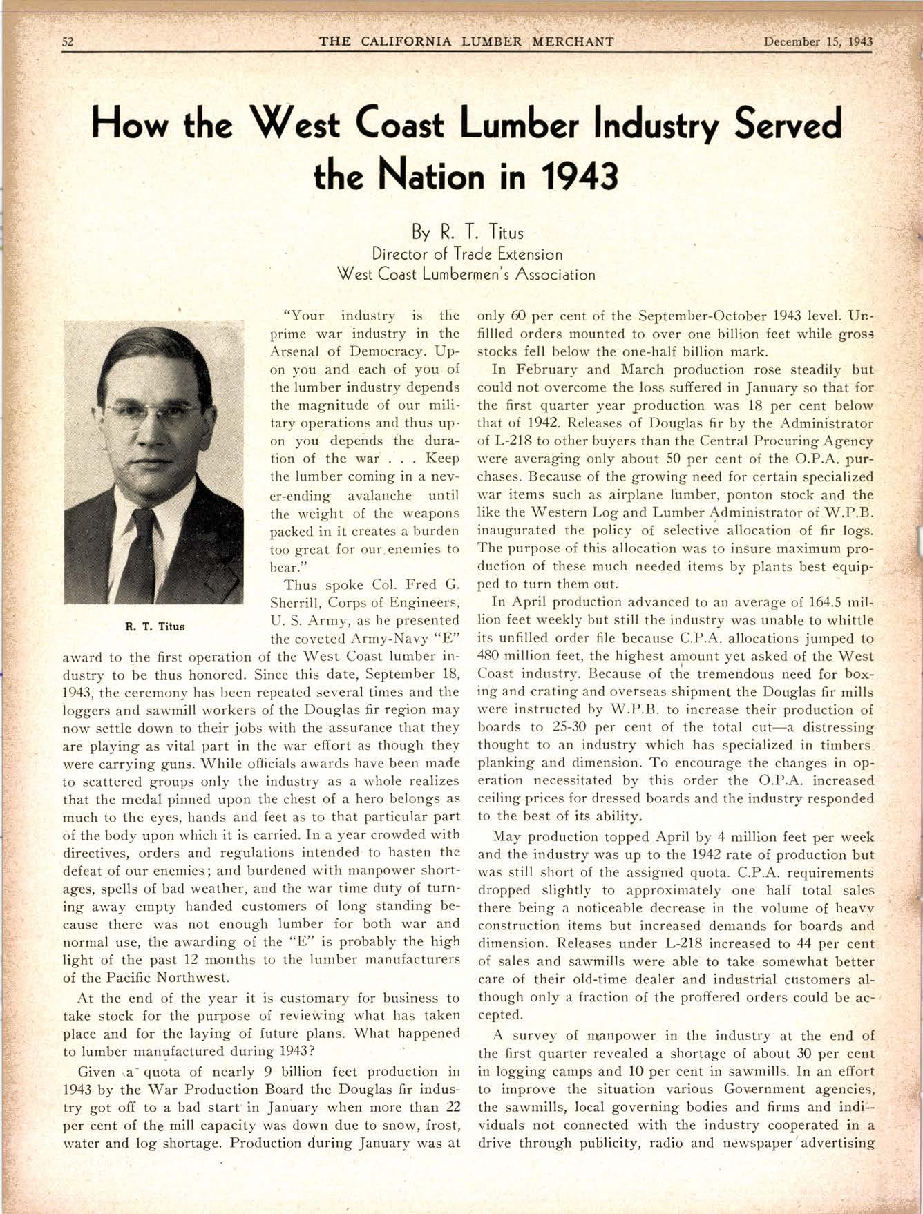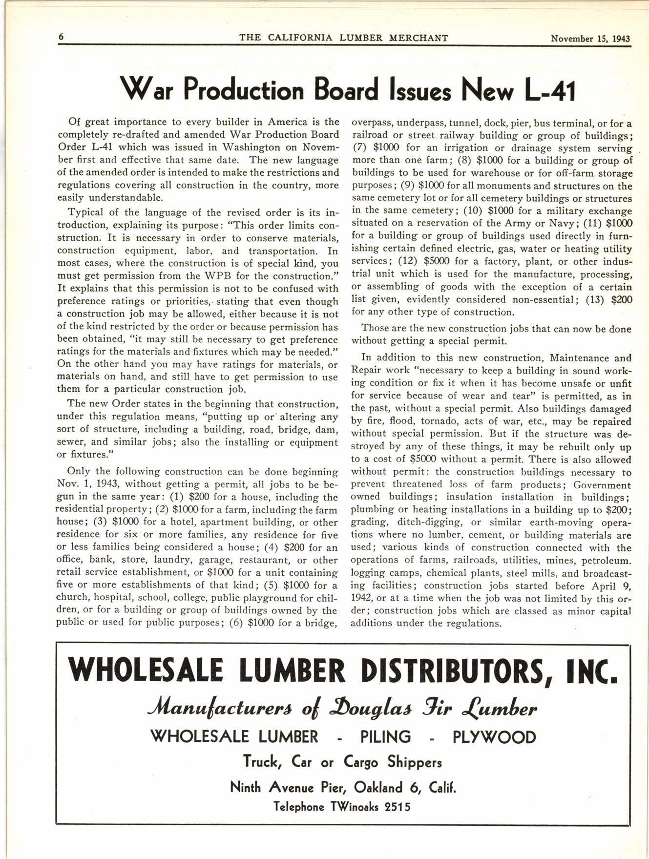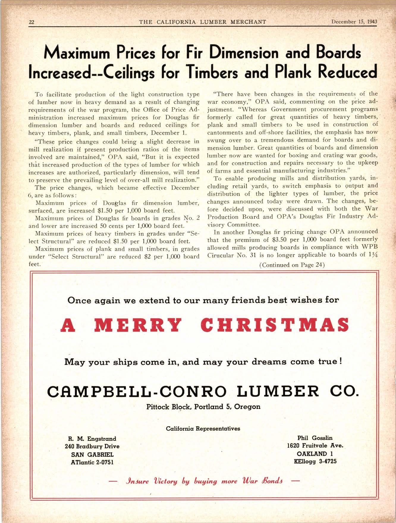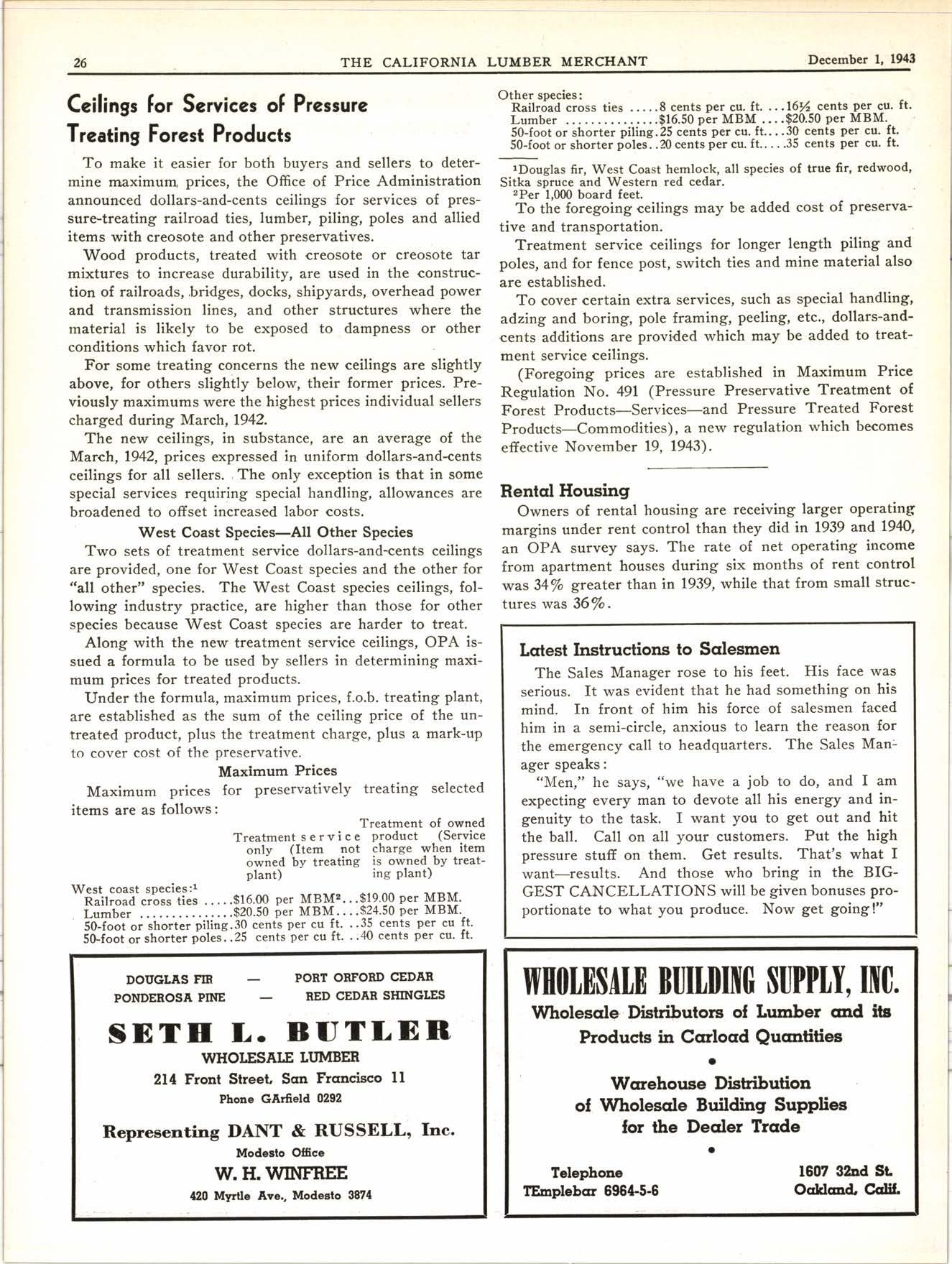 THE CALIFORNIA LUMBER MERCHANT December 15. 1943 78 w s w