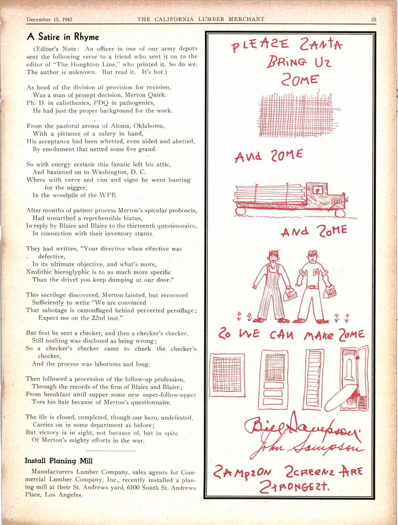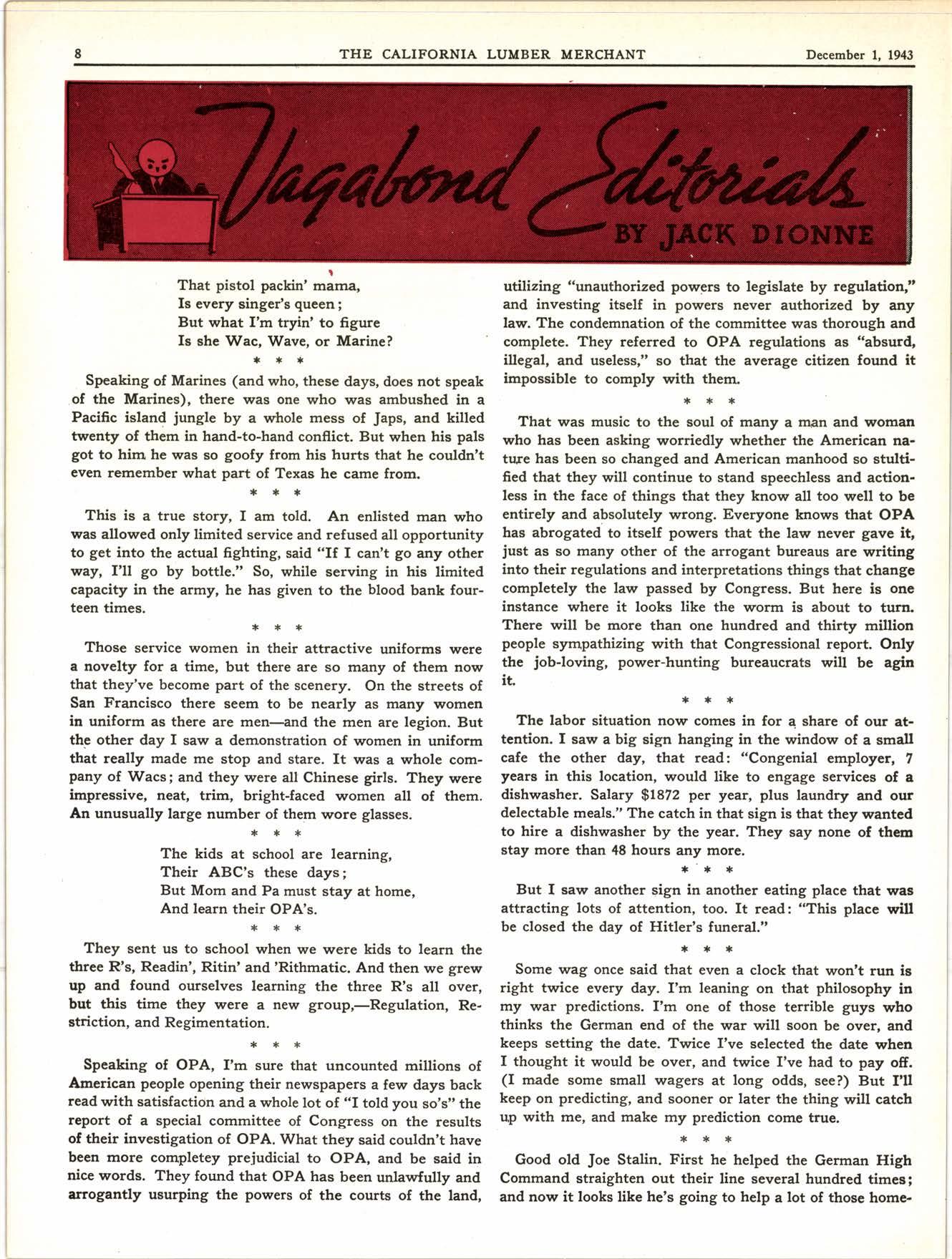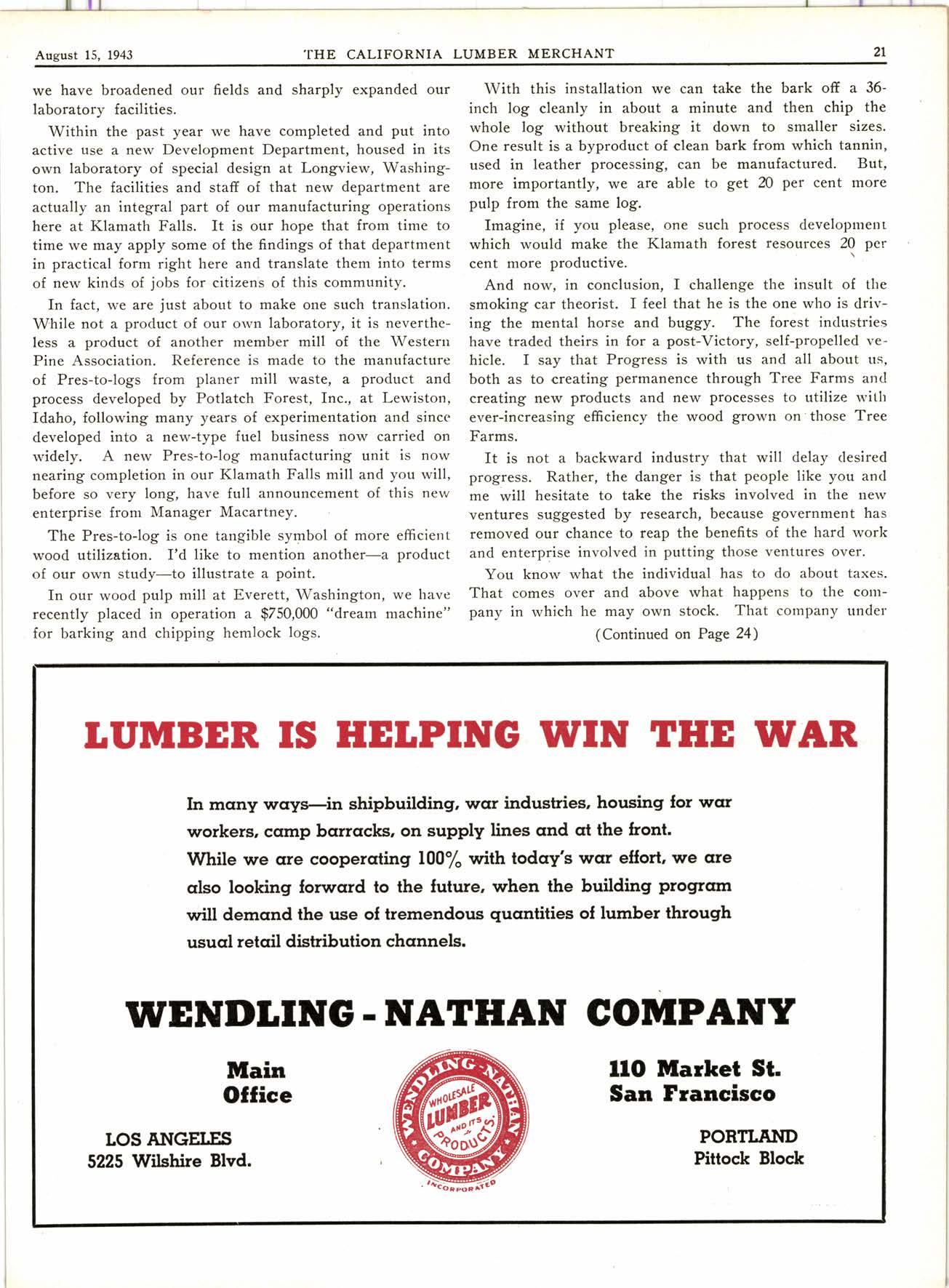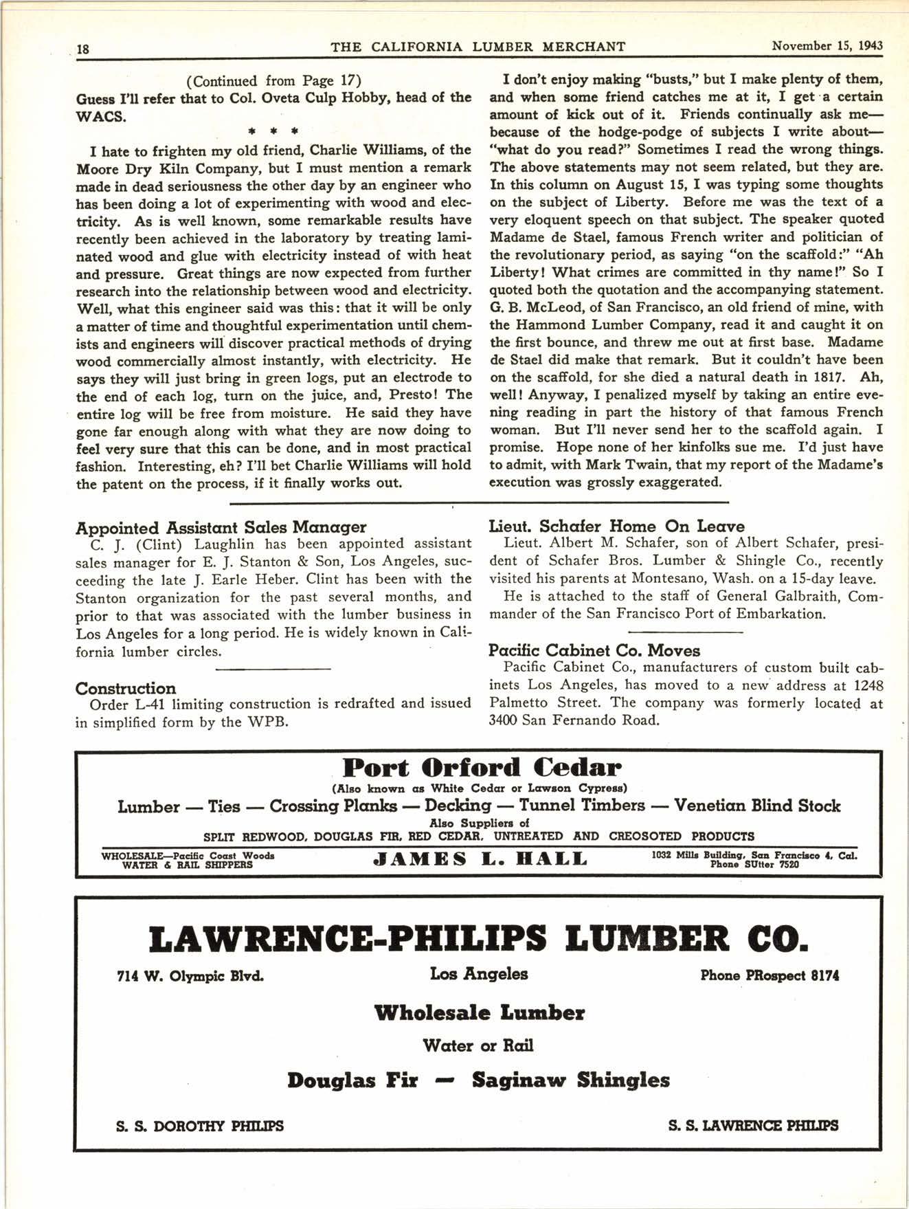 THE CALIFORNIA LUMBER MERCHANT December 15. 1943 78 w s w