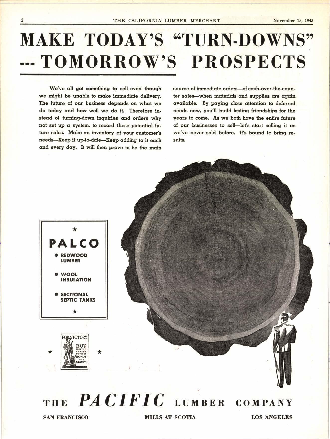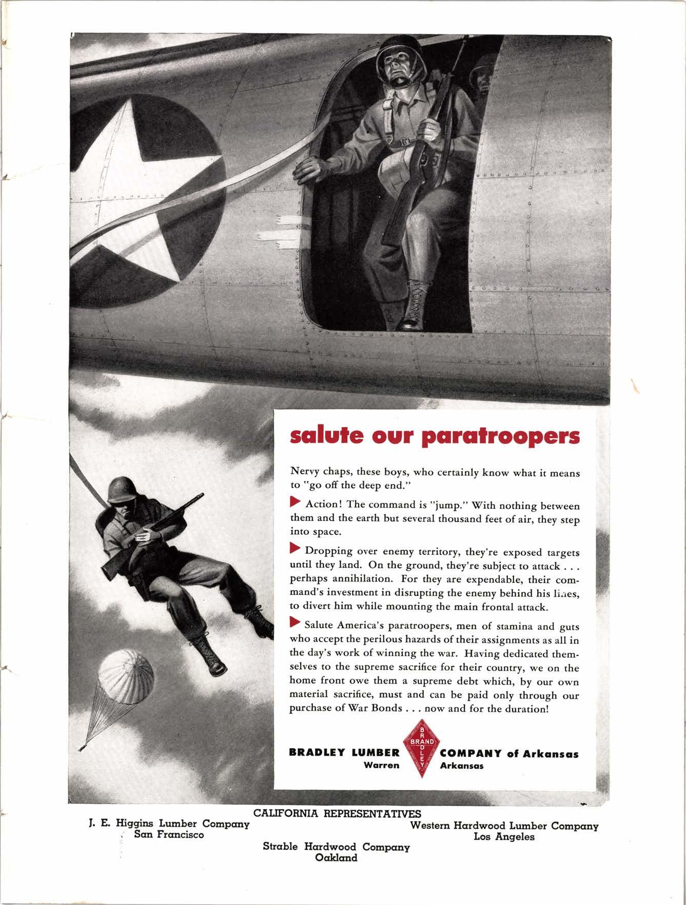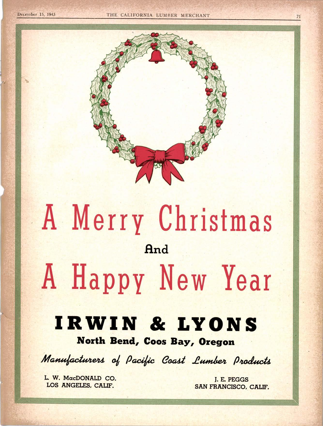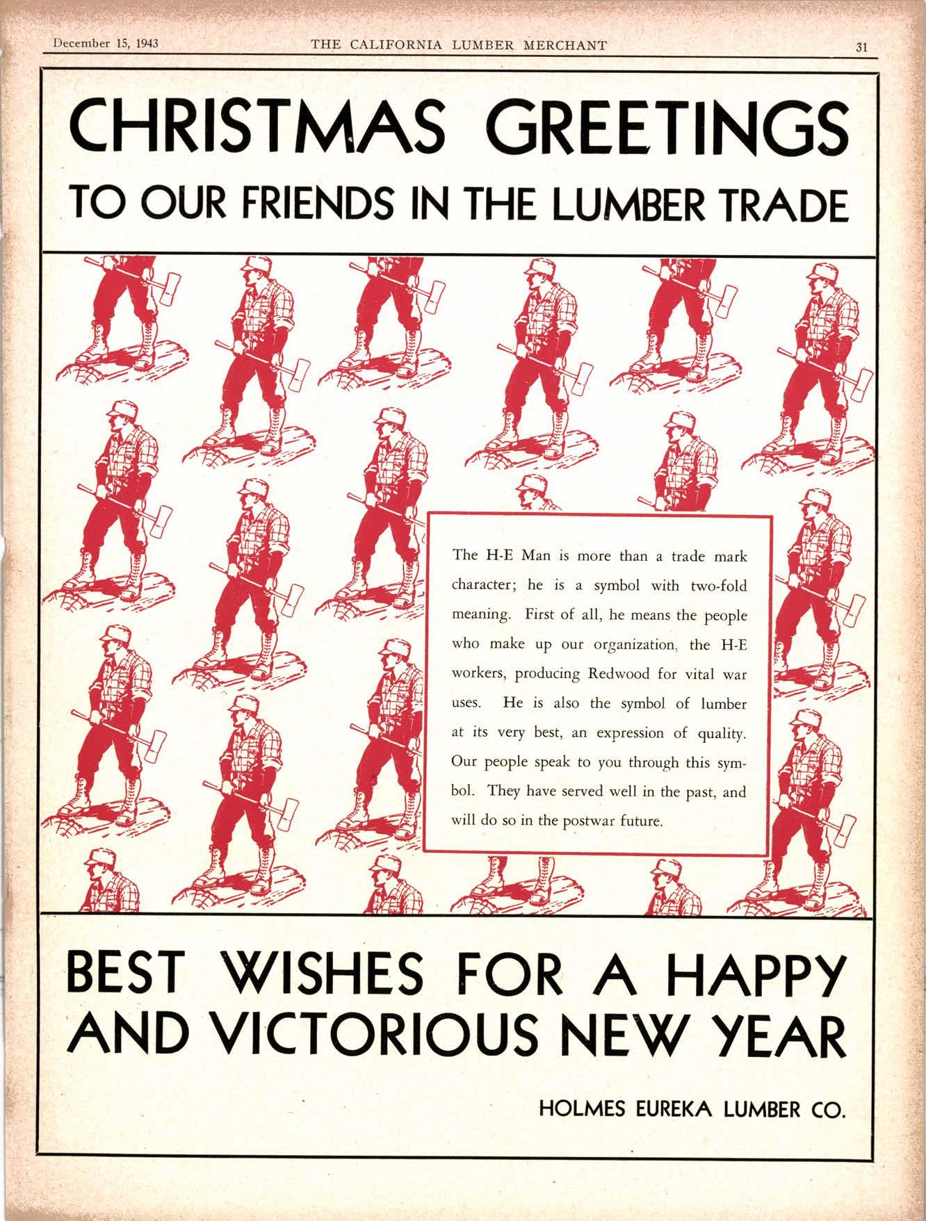 DecembeT i5, 1913 THD CALIFORNIA LUI{BER MERCHANT PAGIFIG MUTUAL DOOR GO. Wishes You Christrnas Greetings Best Wishes For 1944 Southern Colilorniq Sales OIIice: GLEN D. BESSONETTE Phone PRospect 9523 GARWOOD, N.J. OBGANIZATION Wcrrehouse: 1600 E. Wcrshington Blvd. LOS ANGELES 2I KANSAS CITY ST. PAUL W;il";ng Ou, griendt A MERRY GHRISTMAS A UIcTORIOi"i IIEw YEAR Uon Jrtloln -,Ka*it {u*6n, Co., ,bnr, sth & Brcrnncn Streets, Scn Francisco 7 r Jd"lidoy Qrnntingt AND BEST WISHES FOR THE NEW YEAR O'NEII.I I.UMBER GO, 16 Cclilornicr St. SAN FRANCISCO II GArlield 9ll0 507 Bonqnza Rd. tAS VEGAS Nevqda SEASON'S GREETINGS AND BEST IVISHES FOR ''44 CAL'IFORNIA PITYWOOD, Inc. VENEERS and PANETS united stctes Gypsum compcny's Insulqtion and Hardbocrds 1403 Filth Street OAKLAND Z, CALIF. Glencourr 96g9