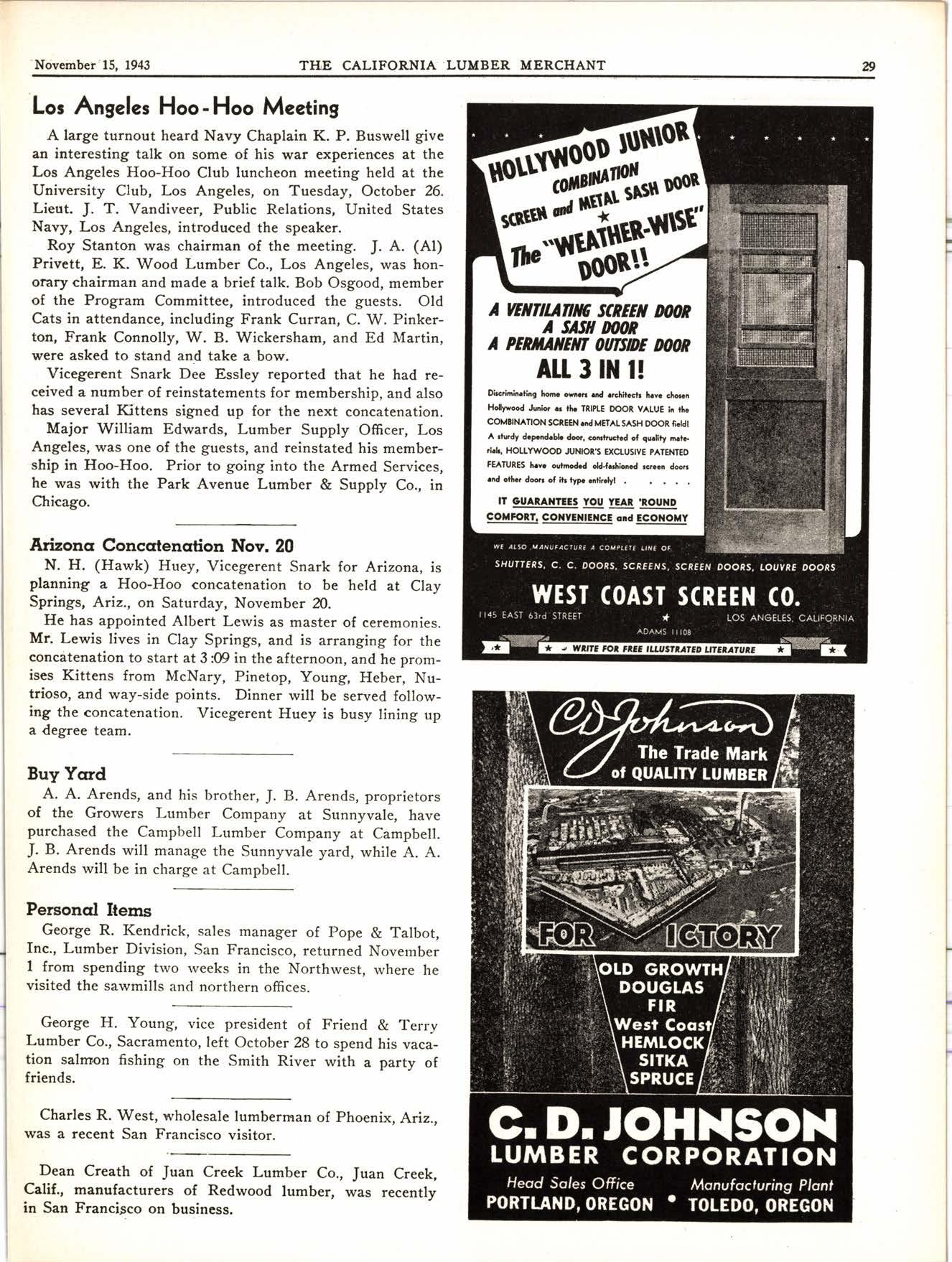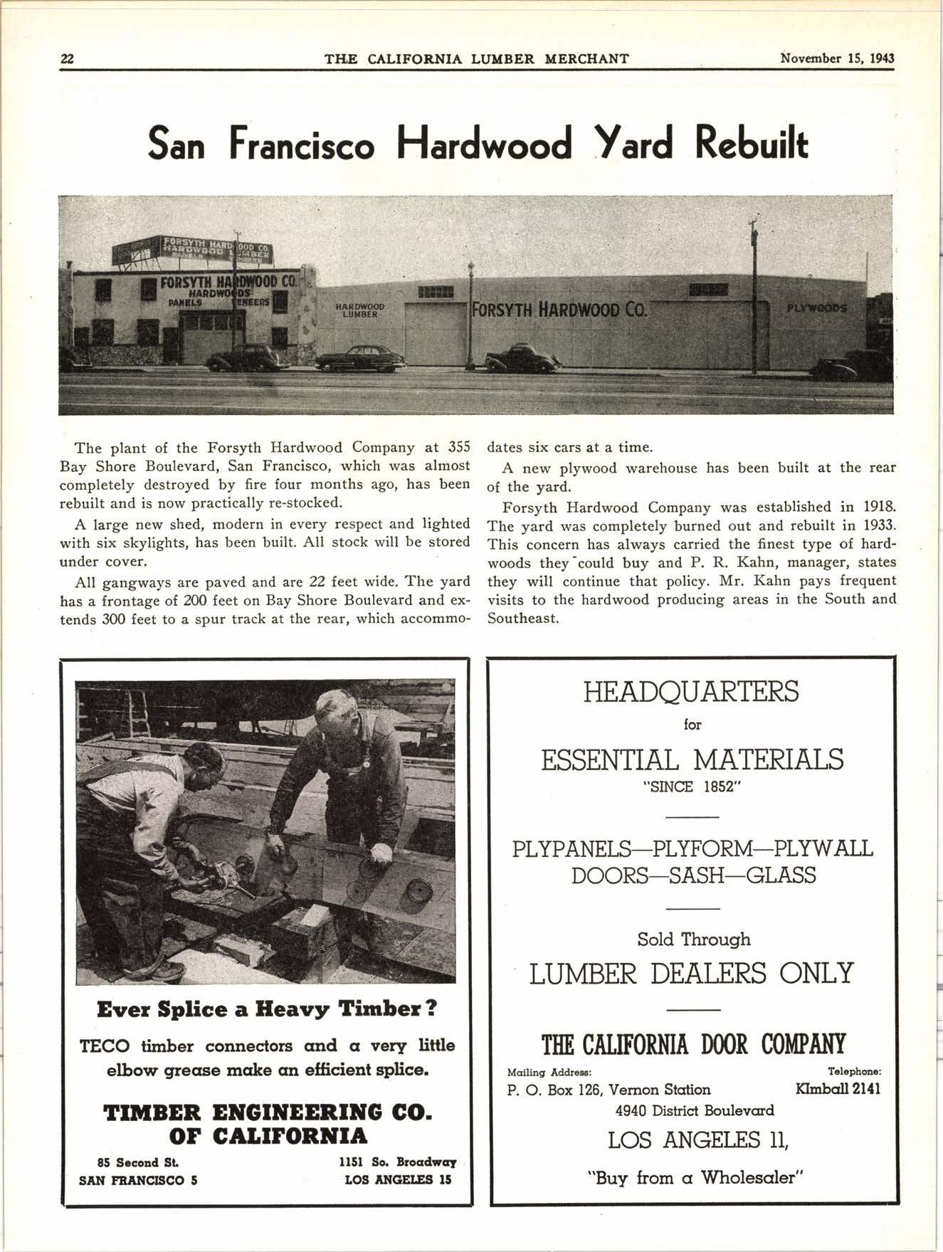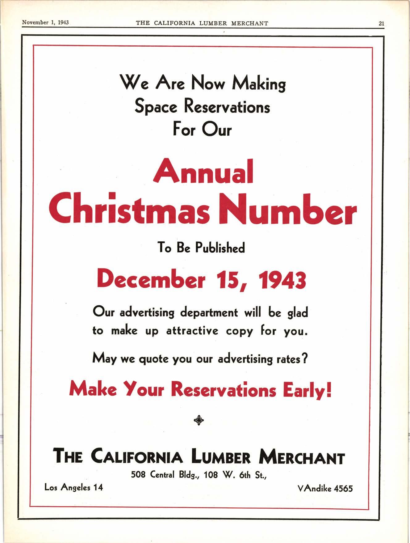 Addreis Box C-1007 California Lumber Merchant 508 Central Bldg., Los Angeles 14, Calif.