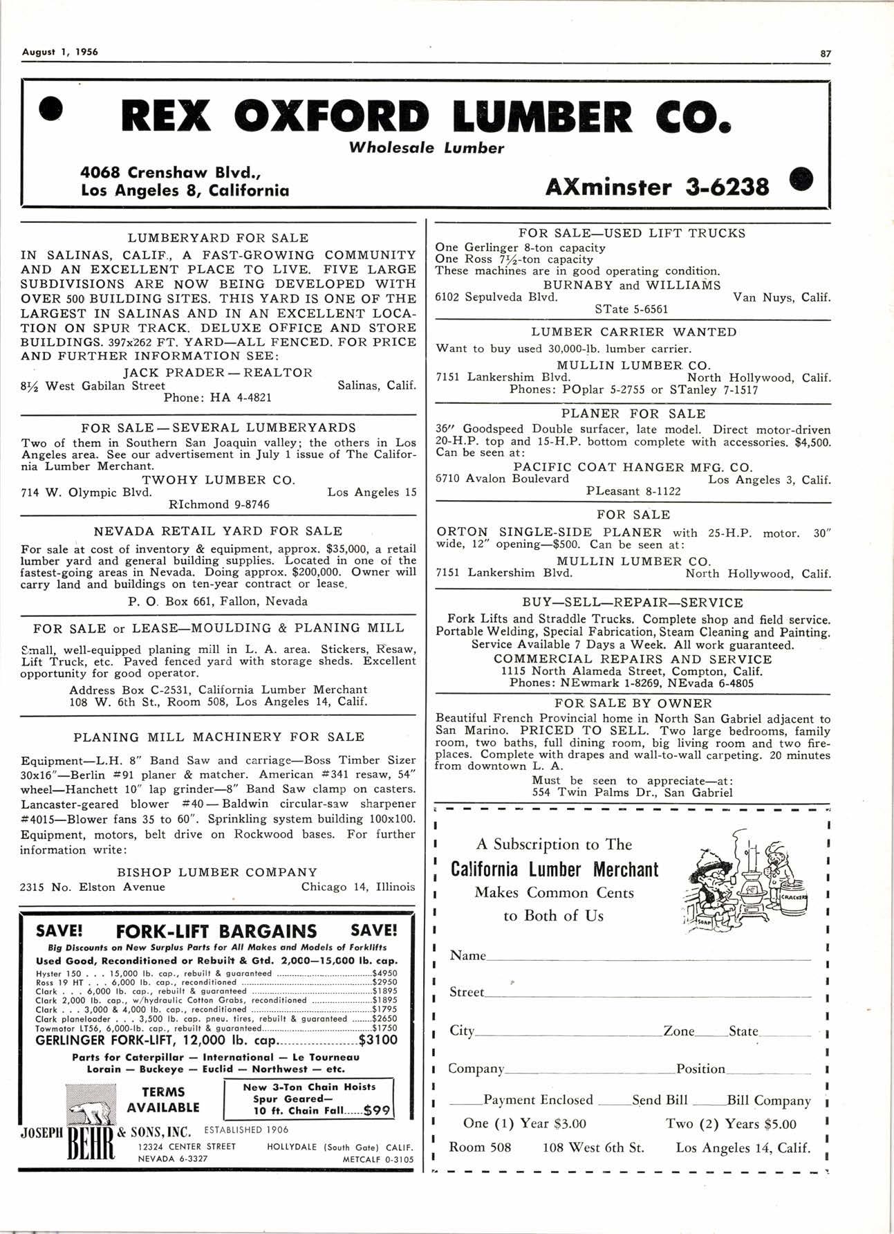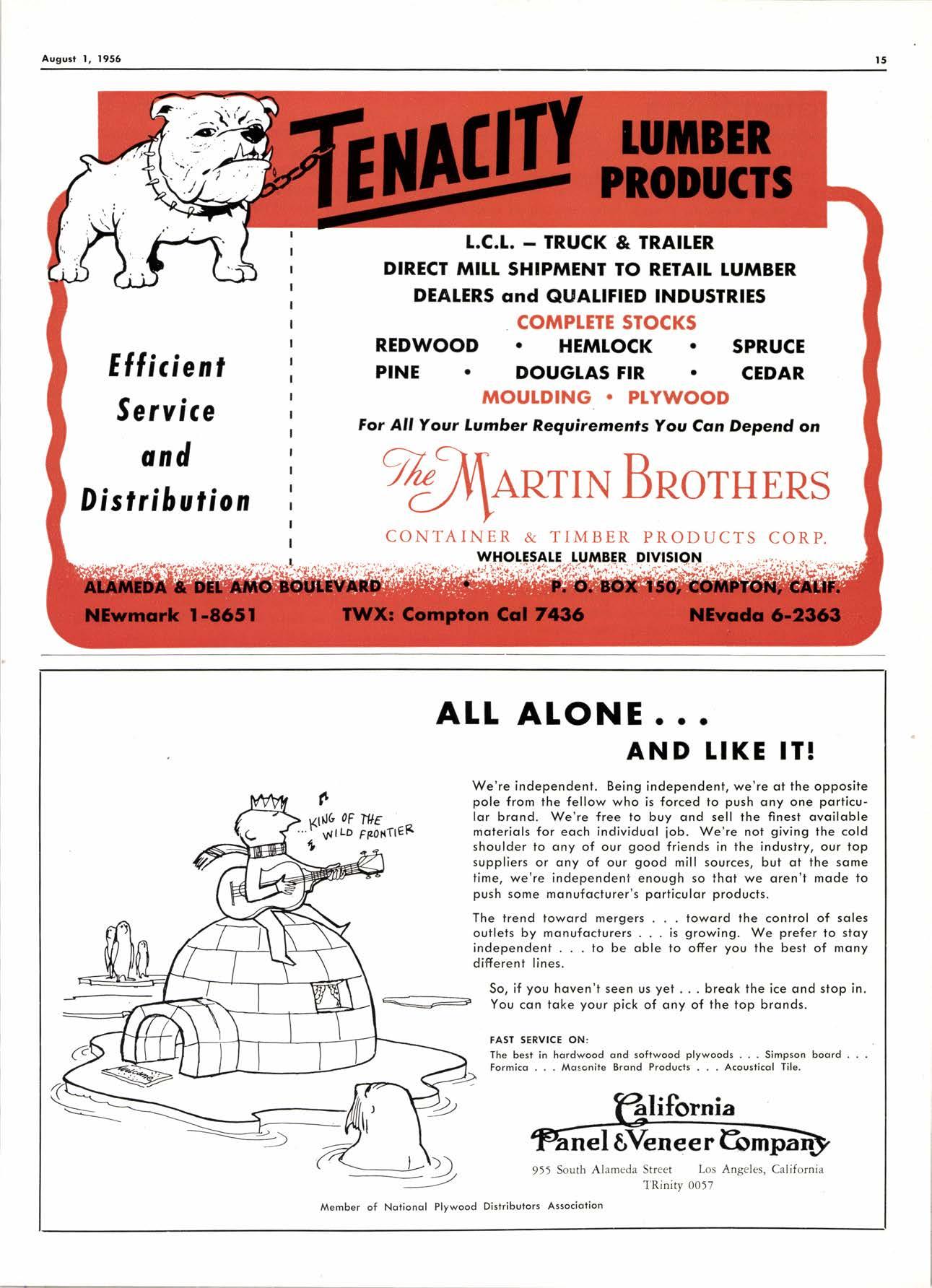 August I, 1955 Cl"ugh t*panfu Opnration! *\$s:s" ltryi; Over 35 Yeors Experience Serving Soufhern Calilornia Complele Sfocks ln Yard lor Prompt Delivery TOpozl-2181 WHEN YOU NEED LUTNBER Coll C LO UGH lUMBE R co. 7221 Eqst Firestone Boulevord, Dowaey, €sliforniq CaIl Us For All of Your Lvmber Requiremenfs LUdlow 3-6659