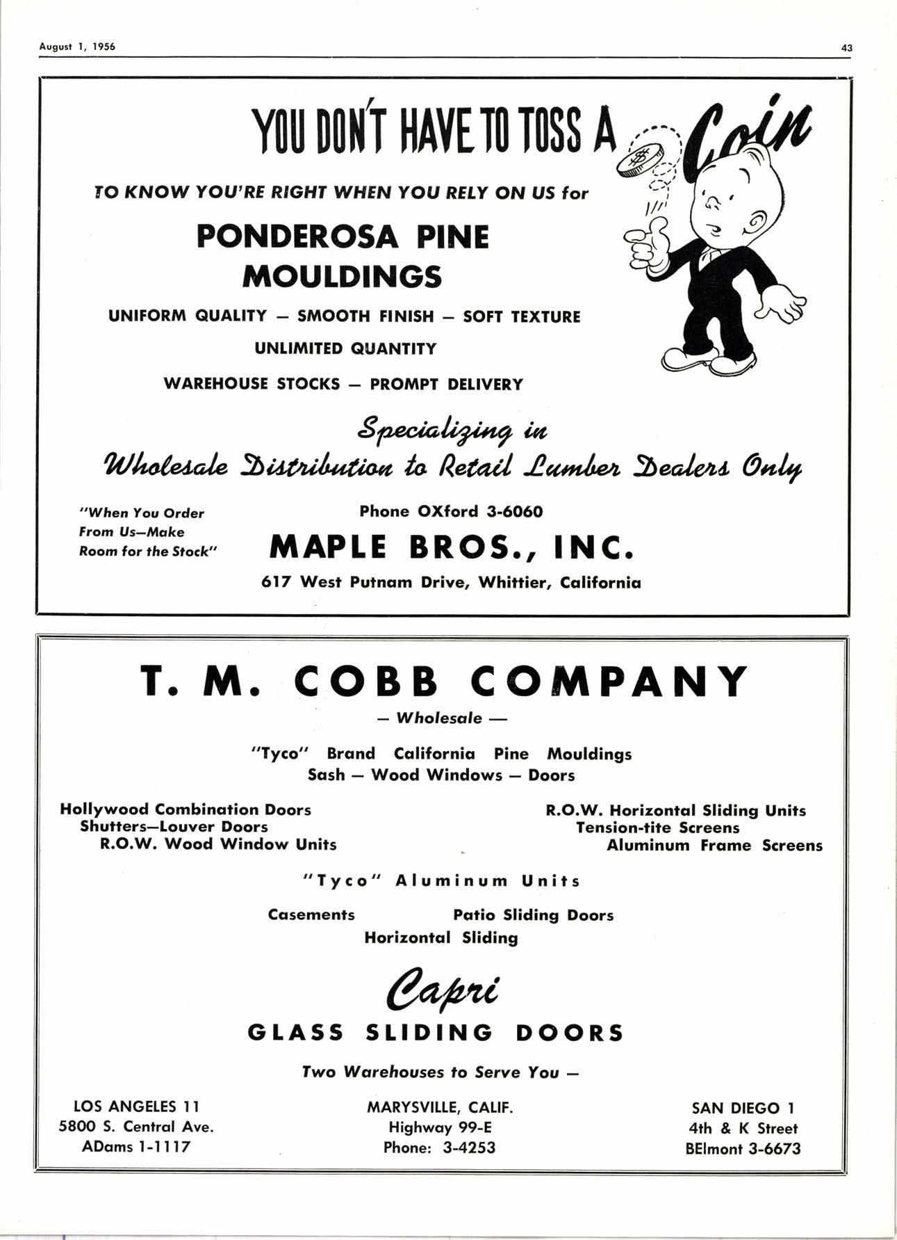 In this issue, rve welcome these new advertisers into the farnily of California Lumber "Merchant-isers":