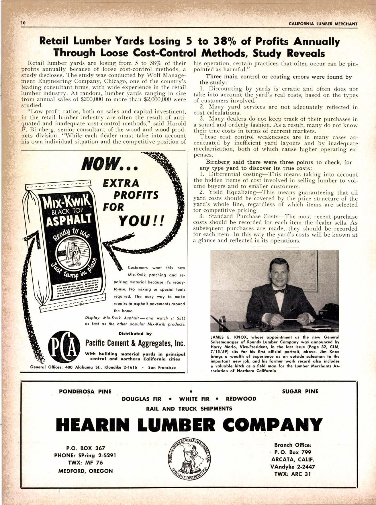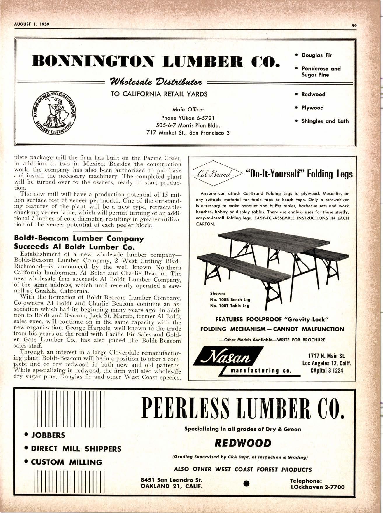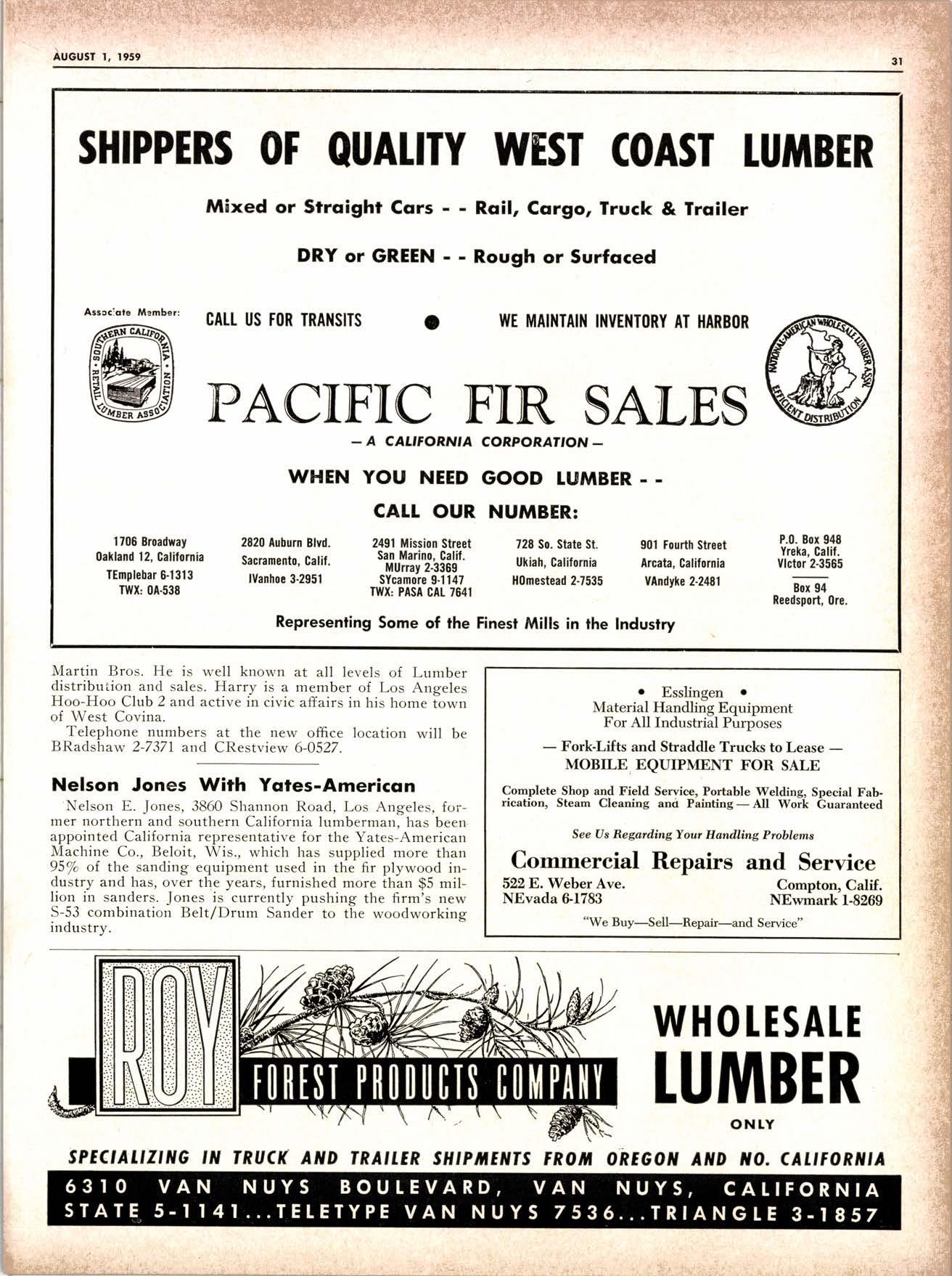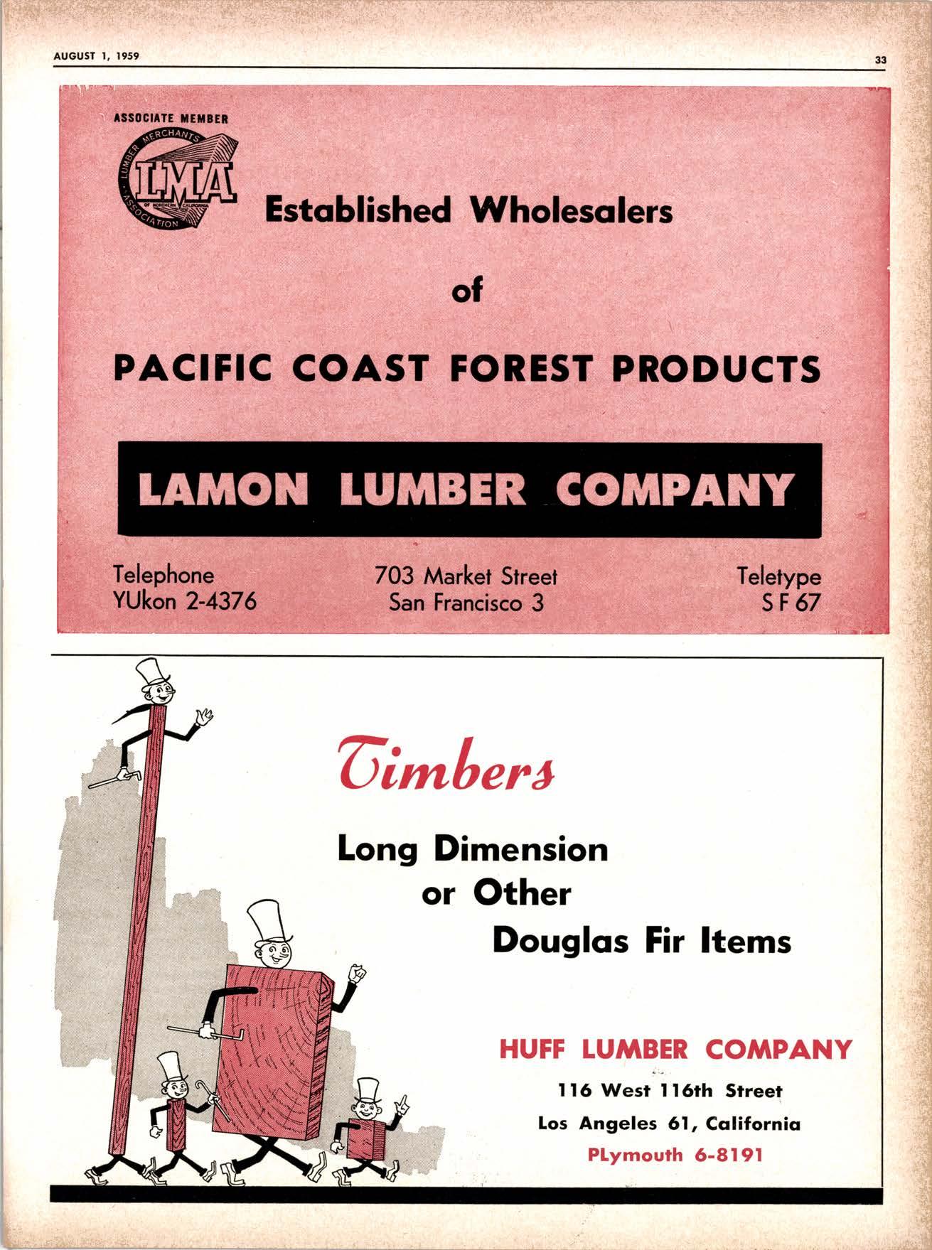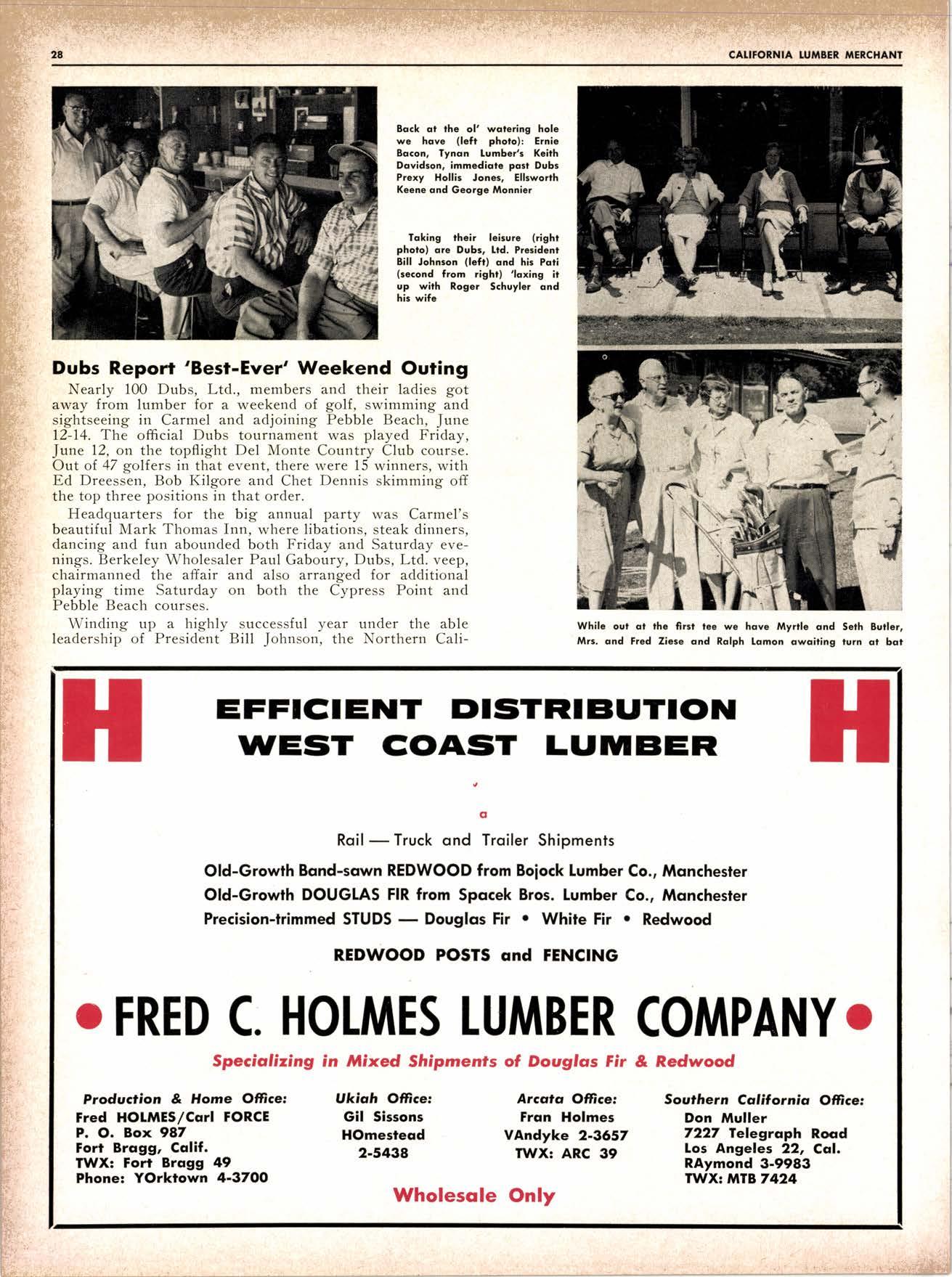 Also joining the venture initially was another JacobsenTom, Jr., who had received his lumber training under his dad's tutelage and then moved on to the wholesale business in 1946 as an outsicle man for Corcls Lumber Co., then of San Francisco. Anotl-rer young'er Jacobsen, Bruce, more recently joined the growing Sun Valley organization, of r,r'hich Tom, Sr. is presiclent, Tom, Jr., vice-president, ar.rd Sechrist, secretary-treasurer.