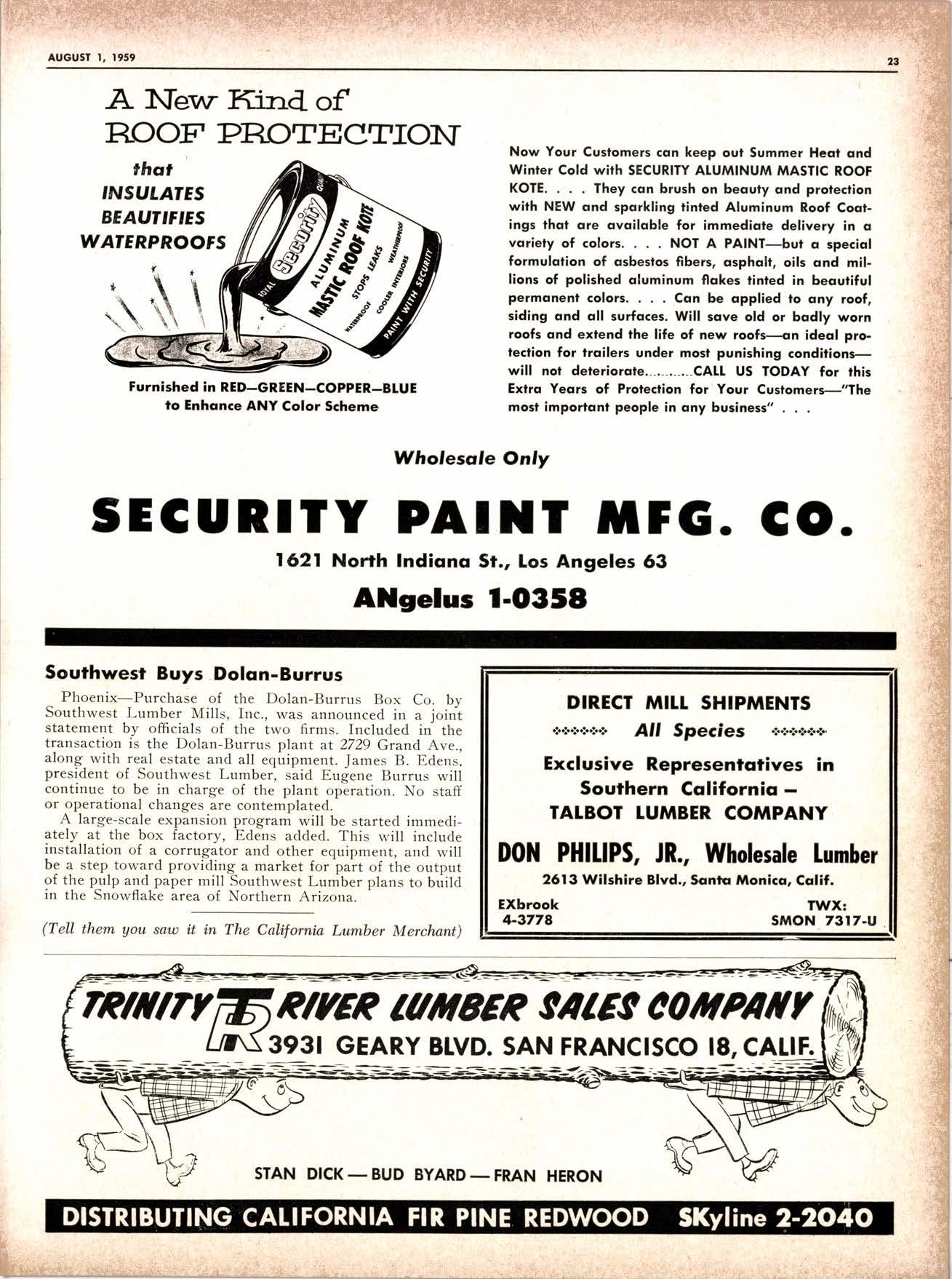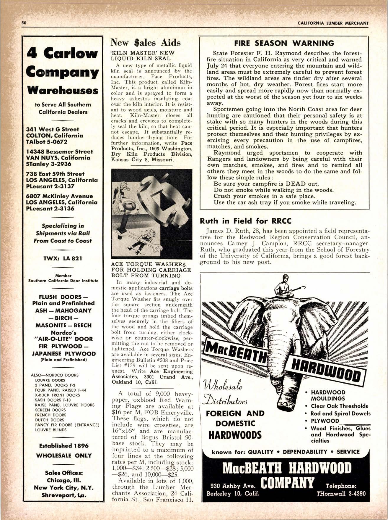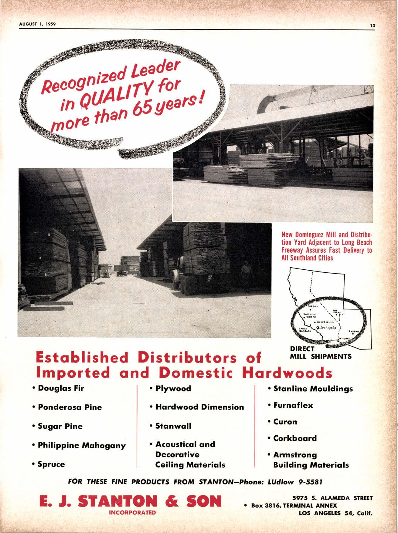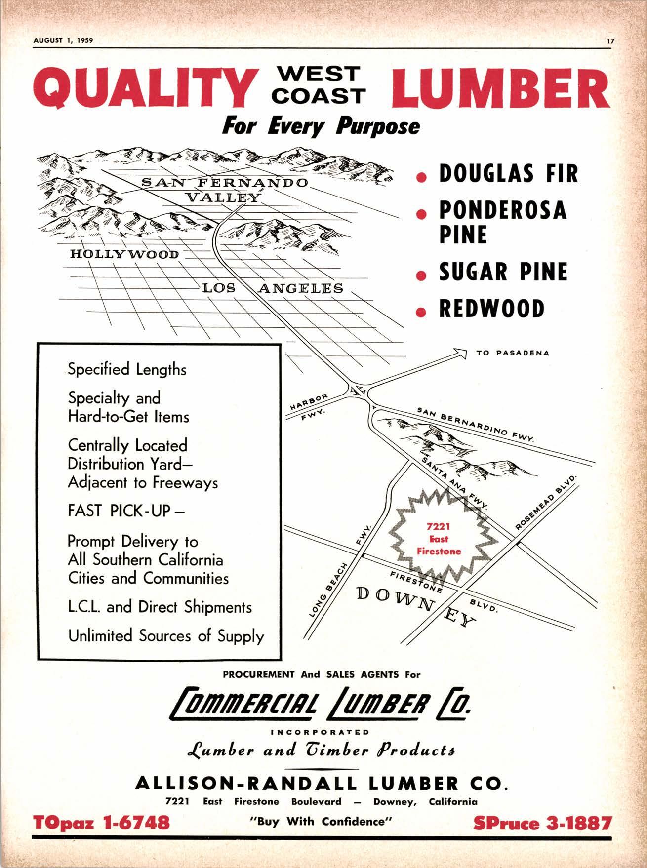 Also joining the venture initially was another JacobsenTom, Jr., who had received his lumber training under his dad's tutelage and then moved on to the wholesale business in 1946 as an outsicle man for Corcls Lumber Co., then of San Francisco. Anotl-rer young'er Jacobsen, Bruce, more recently joined the growing Sun Valley organization, of r,r'hich Tom, Sr. is presiclent, Tom, Jr., vice-president, ar.rd Sechrist, secretary-treasurer.