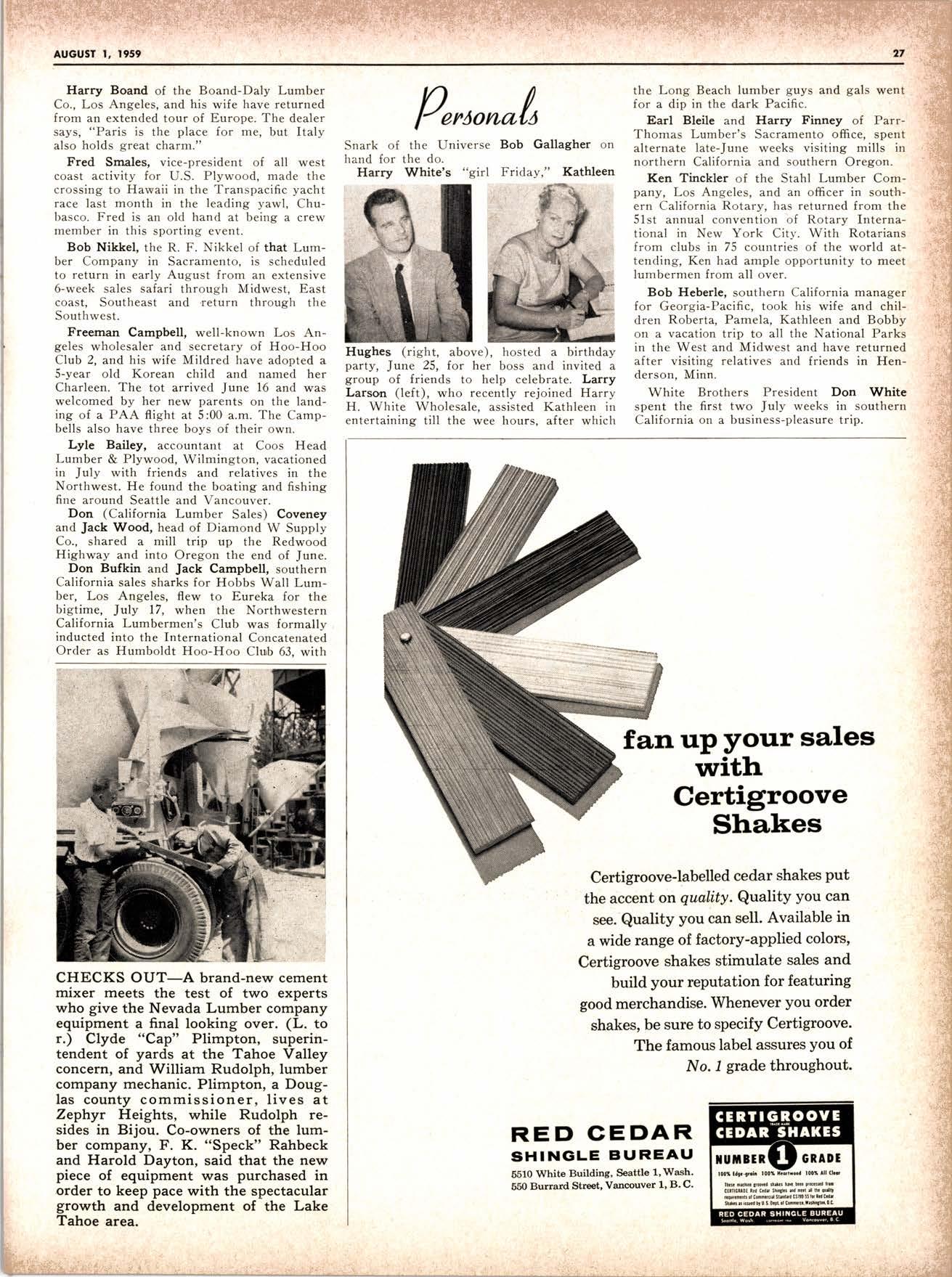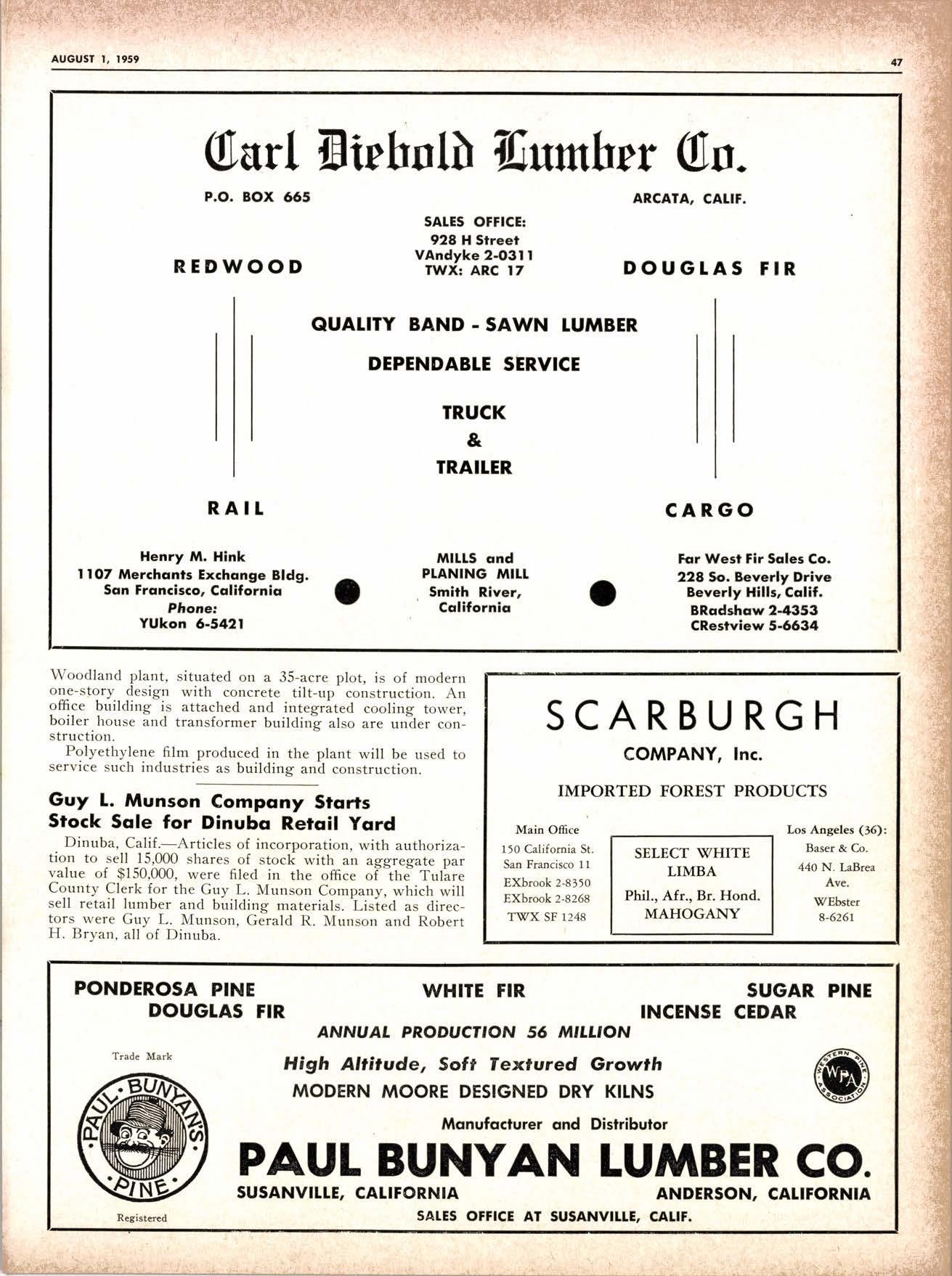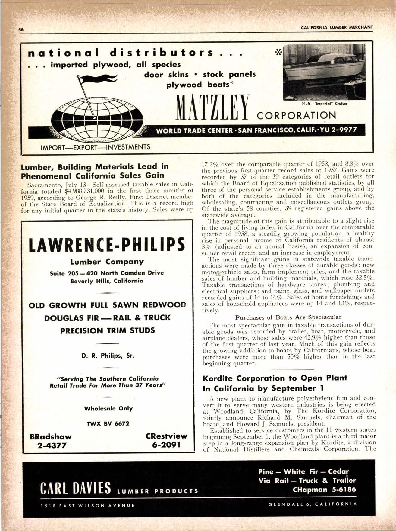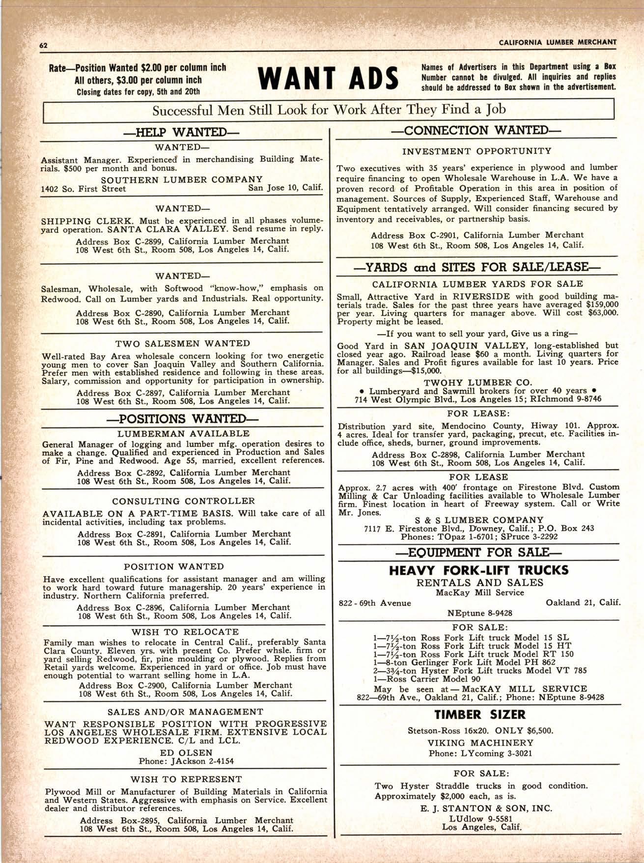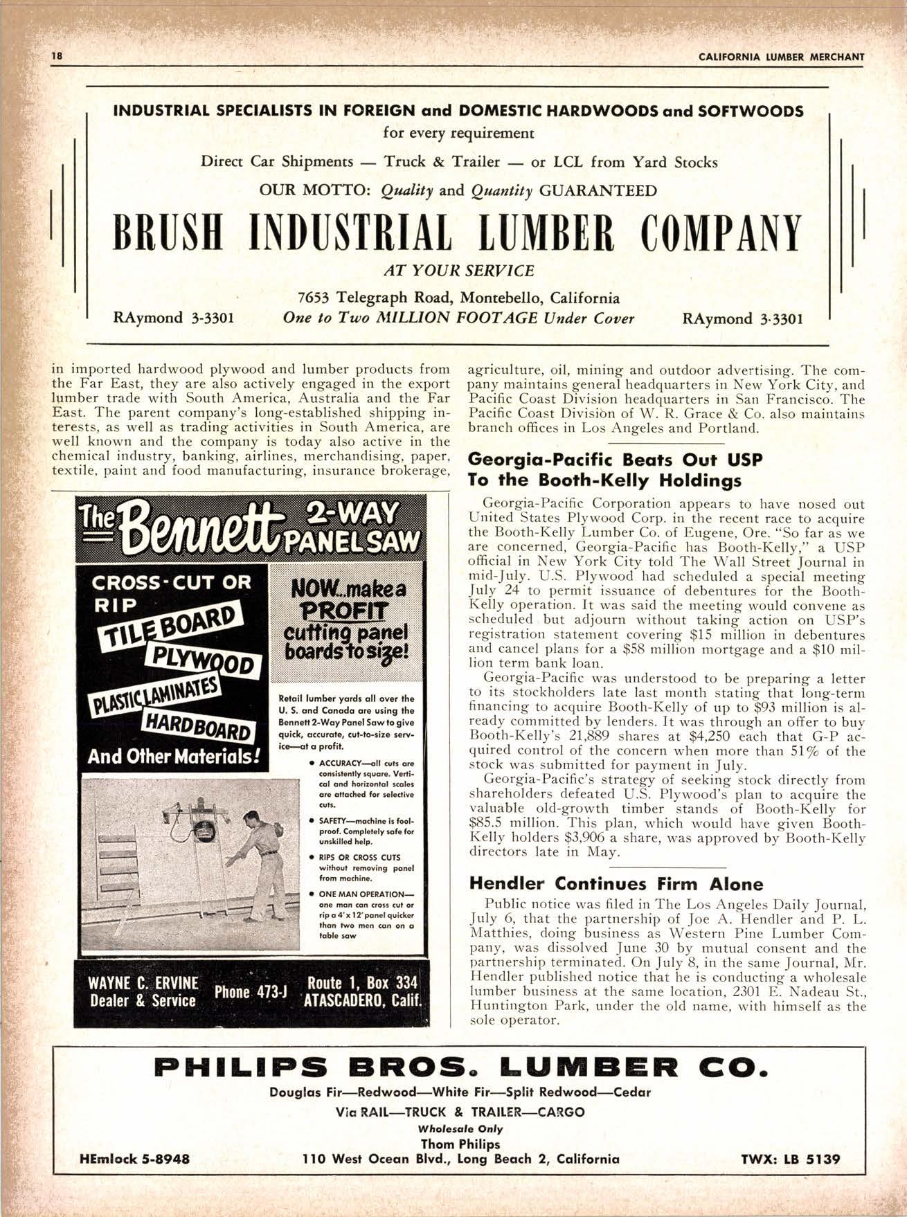Also joining the venture initially was another JacobsenTom, Jr., who had received his lumber training under his dad's tutelage and then moved on to the wholesale business in 1946 as an outsicle man for Corcls Lumber Co., then of San Francisco. Anotl-rer young'er Jacobsen, Bruce, more recently joined the growing Sun Valley organization, of r,r'hich Tom, Sr. is presiclent, Tom, Jr., vice-president, ar.rd Sechrist, secretary-treasurer.