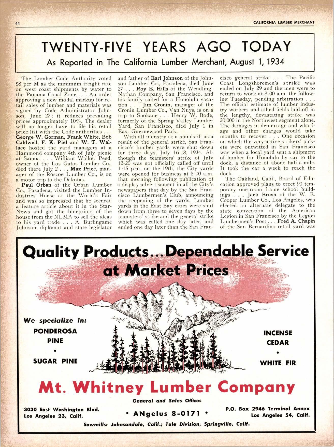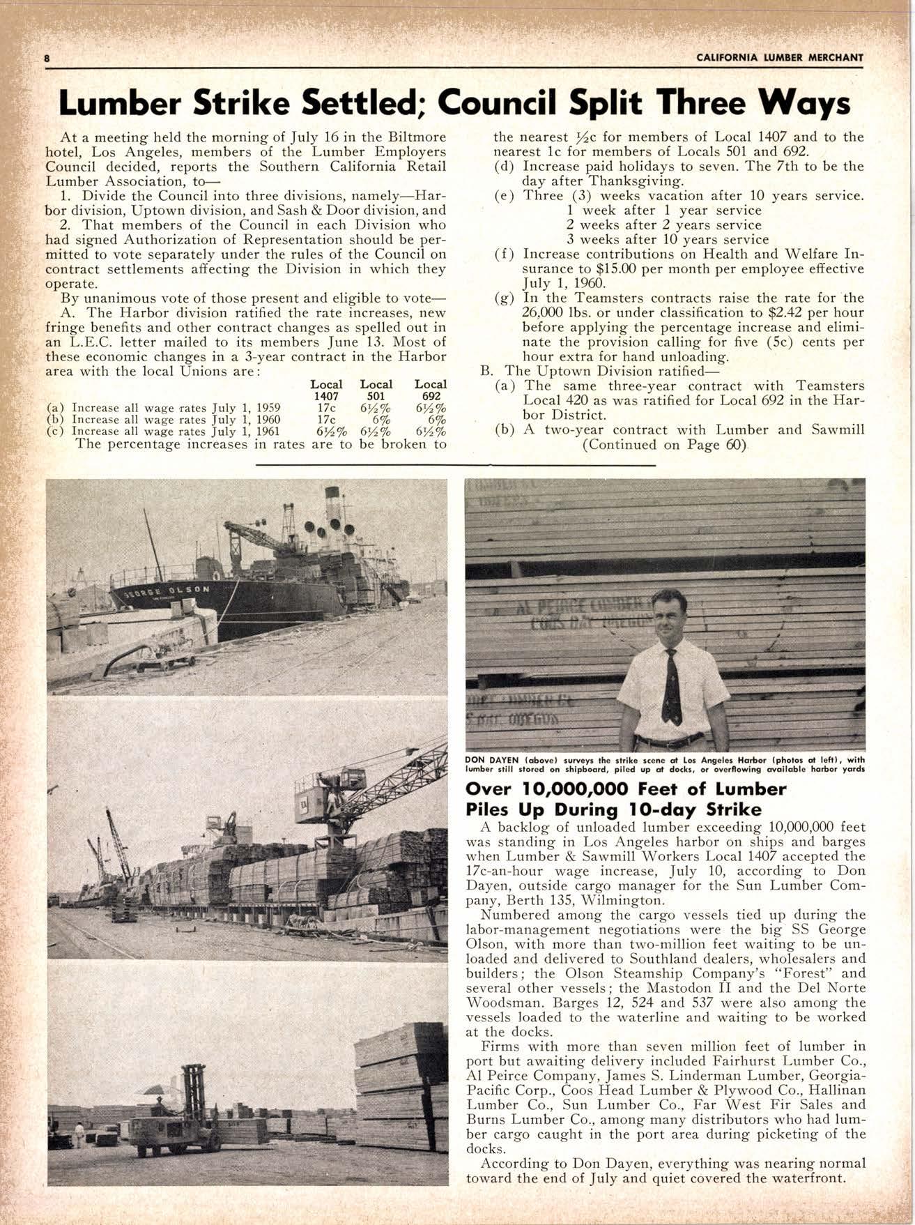 .\ backlog of urrlo:rrlecl lurnbt'r e,rcceclirrr: 10,000.000 feet n'as stanr'lirrg irr T-os -\ngrle-. lrarbor t.rn slrips :rncl bargcs u'hcrr l-nnrbcr ,\ San'rnill \\'orkcrs Local 1-l0Z act:eotrrl thc l7c:Lrt-horrr \\':Lge irtcrerLsc. -l ulr' 10. acc, ,rrling 1, , I),,tt I)avt'n, outsirlt, carg() rnzulzrger fr.rr the SLrrr I-rrrrrber Conrl,arr.r llrltlr 1.15. \\'ilrrrirrgt, 'rr.