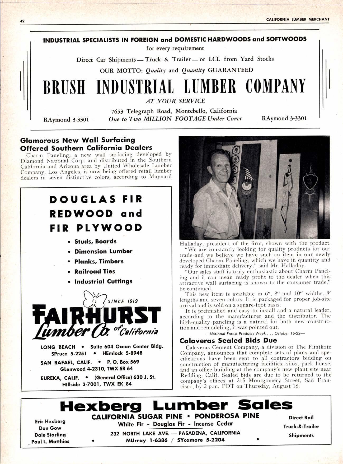 EbaqMff €@ THE PACIFIC TUMBER C(|MPAI{Y Mills at Scotia, Eureka, and Elk, California 100 Bush St., San Francisco 4, Calif. 35 E. Wacker Dr., Chicago l, lll. 2185 Huntington Dr., San Marino 9, Calif. @ Mcnbcr of Colifornio Redwood Arsociolion LI