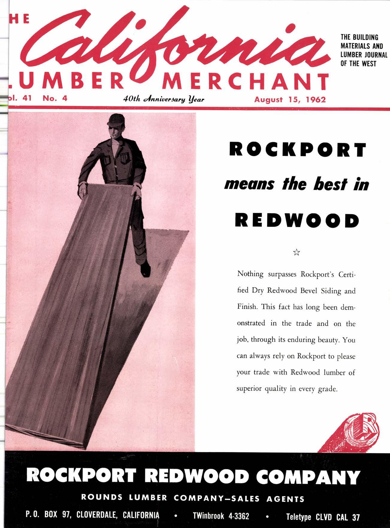 Nothing surpasses Rockport's Certified Dry Redwood Bevel Siding and Finish. This fact has long been demonstrated in the trade and on the job, through its enduring beauty. You can always rely on Rockport to please your trade with Redwood lumber of superior quality in every grade.