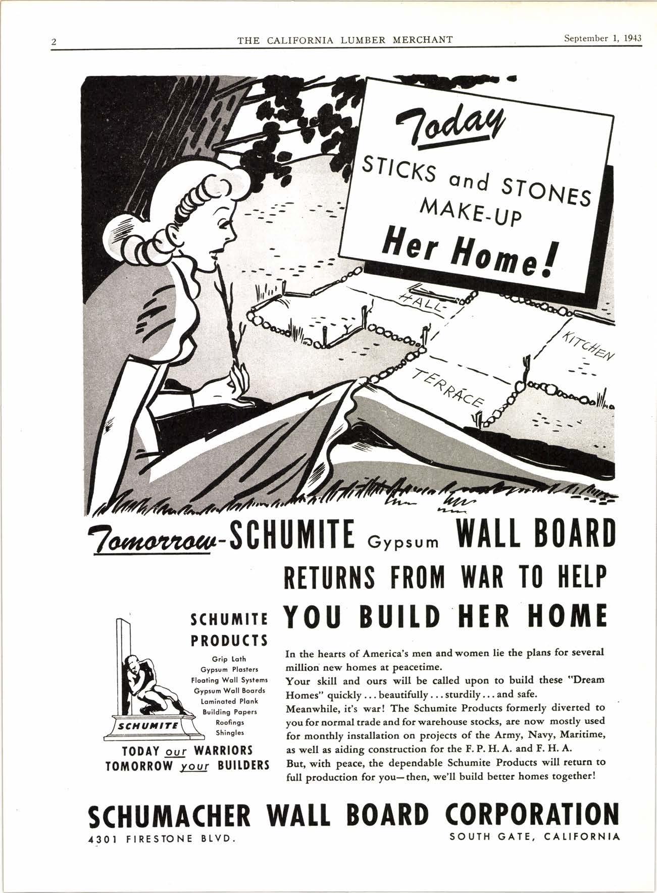 But, with peace, the dependable Schumite Products will return to full production for you-then' we'll build better homes together!