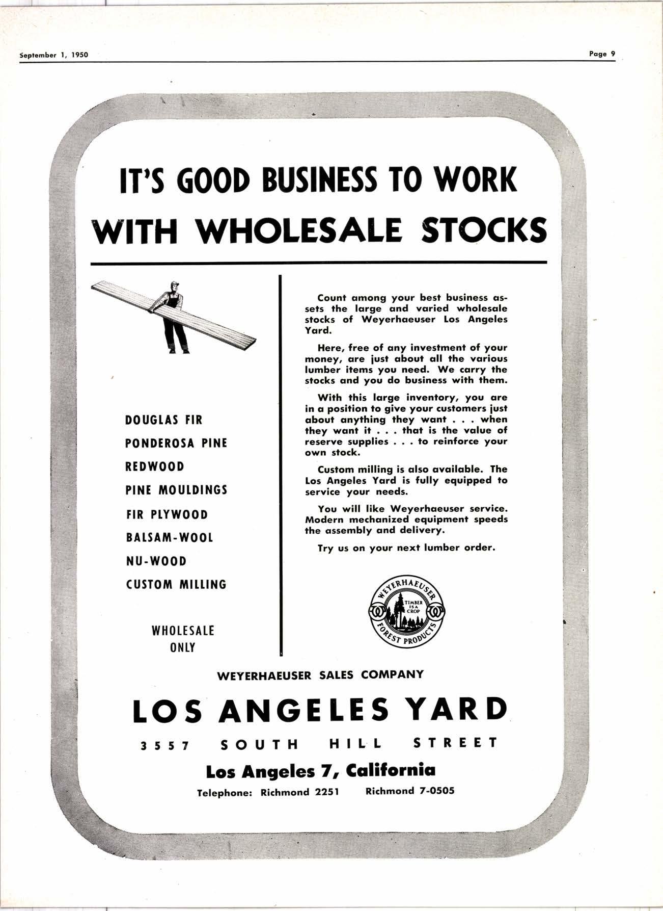 LUMBERMERCHANT JackDiorne,prblisllrrSAN FBANCISCO OFFICE W. T. Blcck {20 Mcr&et St. Scn Fraacigco ll YULoa 2-4797 PEGGY STIRUNG Assistant Editor lvt. ADAMS Altirtall Mclcger w. T. BLACK r. c. Dioane,,,"".r."i3'i?l1t"1ir:f:irt"#v"31r?jl-'l'iil1". Brcck, secrercry Advertisins Mcncser s08-s-r0 centrqr B"rdt"n:llls'"*r'"1,t3r".,t;trtll,li:"*;:tlflll,.l!..orone vAndike 4s6s Entered cs Secoad-clqss rqtter Sept€Ebet E, 1922. ct tbe pogt Ottice at Los Angeles, CqlUoniq, under Act oI Mcrcb 3, l8?9 ili$:'E:':r*'i:";i3i:0"::1"'* Los ANGELES 14, cALrFoRNrA, =E'TEMBER 1, 1es0