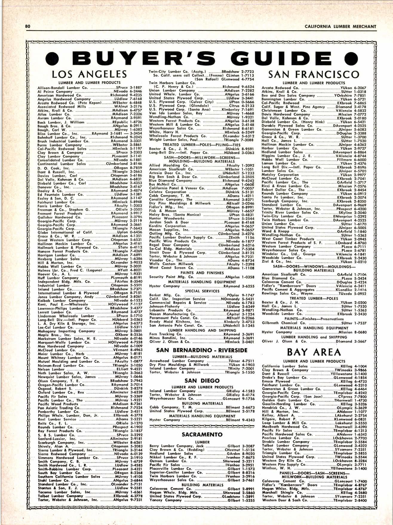 3-6166 Unltcd 51016 Plywod Gcp. .-.-.............1Ud1ow 3-3441 U.3. Plywrd Corp. (Culver Cityl ..-.--..-...UPton G5666 U.S. Pllvood Gorp. (Glendolcl -------..-..---.Cltru tG2133 U.5. Plyureod Corp. (S6to Anol ......-.Klnbsley 7-t691 Vo lde lmbs Soles, Rtry .--.------------..-ilUnrry l-4668 SAN FRANCISCO IUfiIECR AND I.UXI8ER PRODUCTS Arcolq.Redwsd Co. .............---.-----.........-.-.YUkq 6-2(57 Afkir, Kroll & Co. -.--......-..---...........-....--.-.5Utlr l-O:tl8 Bee od Deo Scla Cmpoy .-..---.....-.-.YOtkrhirc 7-7851 Eqmingto hnbcr Co. Yukon 6-5721 Col-Pci0c Rcdrod ..EXbroot 7-6865 CCif. Sugc E W6l. Plnr Agmcy -.-.....Dlcnod 2-{178 Chrirlmo Lrnibcr Co. .....-.-....-.-----.-.--VAlencio +5!32 Dwir Hoidwmd Cmpcy .----------.---.........tlllrzla 74772 Del Volle, Kdno t Co. ......-..---------------Exbroot 2-OIEO Dlobold lmbs Co. (Hftry Hitrkl ..----.-..--YUkm 6-5421 Dwdlo Plyrcod Solc Co. .----.----------DAvspdr 4-2525 Gmcnto I Grcm tmber Co. .---......-.JUnipcr 5{@3 GorgiePGific Corp. ...-....-.......---...-----DOuglc 2-3388 Groe & Co,, W. n, ...-..-....---...-------------.----SUnq l-3700