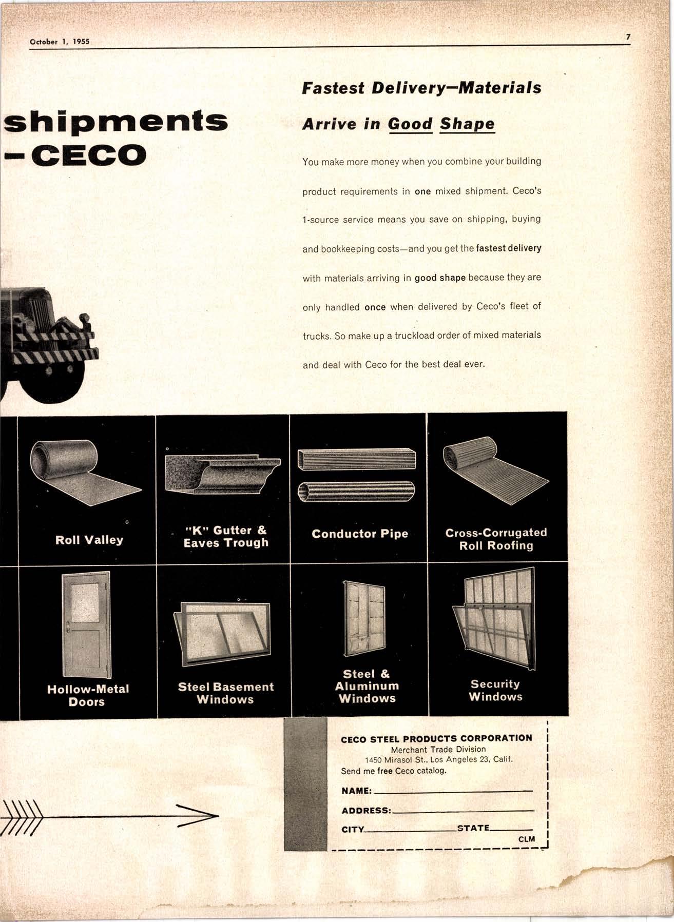 You make more money when you combine your building product requirements in one mixed shipment. Ceco's 1-source service means you save on shipping, buying and bookkeeping costs-and you get the fastest delivery with materials arriving in good shape because they are only handled once when delivered by Ceco's fleet of trucks. So make up a truckload order of mixed materials and deal with Ceco for the best deal ever.