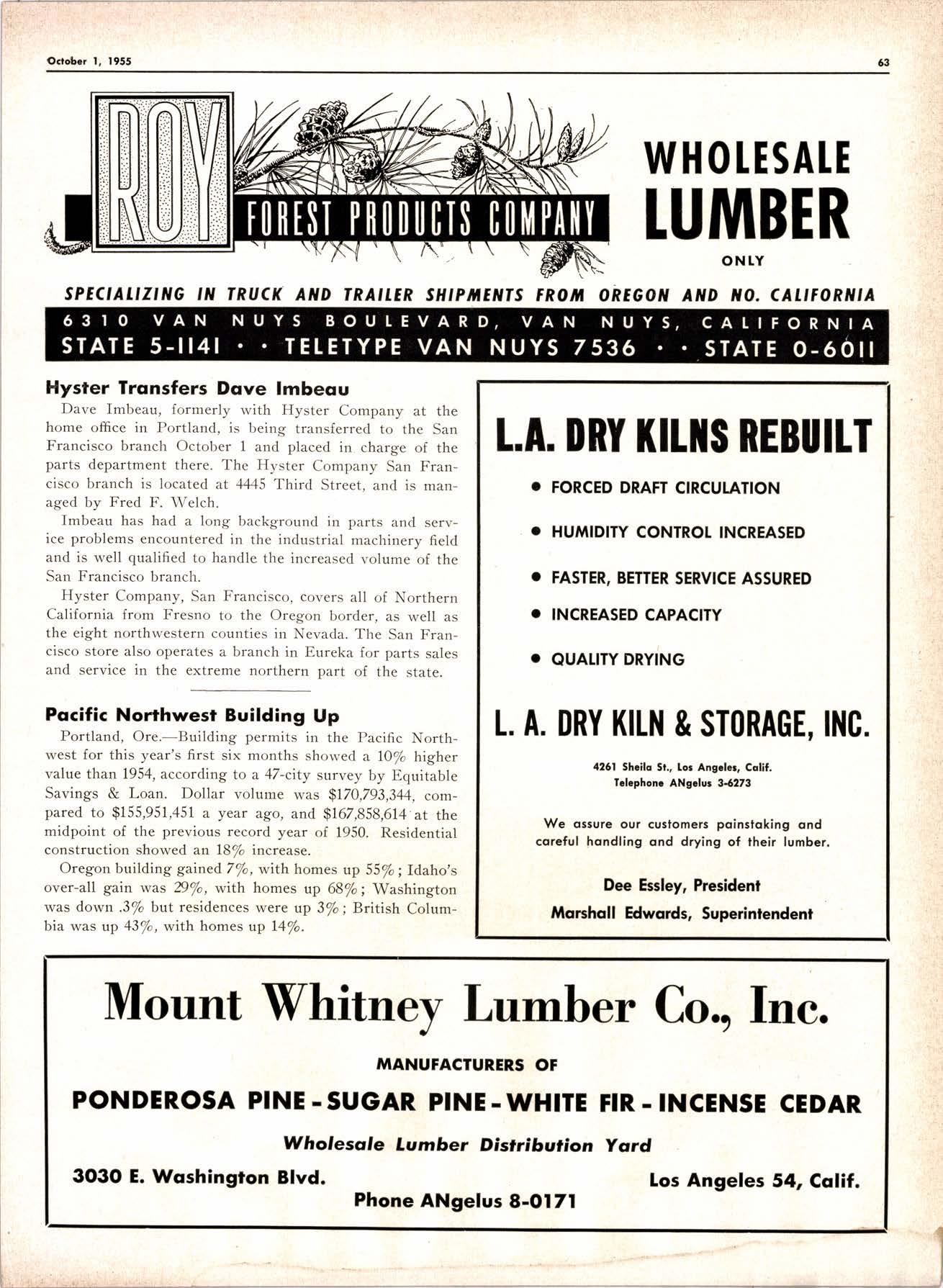Dave Imbeau, formerly with Hyster Company at the home office in Portland, is being transferred to the San Francisco branch October 1 and placed in charge of the parts department there. The Hyster Company San Francisco branch is located at 4445 Third Street, and is managed by Fred F. Welch.