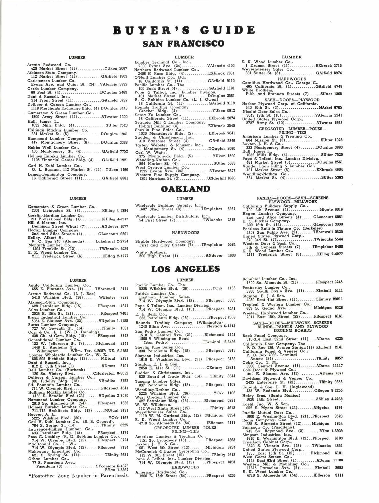 19tr 19{6 WHOI.[TAI,[ WEST GOAST FOREST PRODUGTS IL 1[ DIsrRIEUTons j WETIDI.IilG.If ATIIAII COilPAIIY francisco 4 Main Ollice 564 Market SL San r.os 5225 ANGEI.ES 36 Wilshire Blvd. PORTI.AND 5 Pittoclc Blocl.