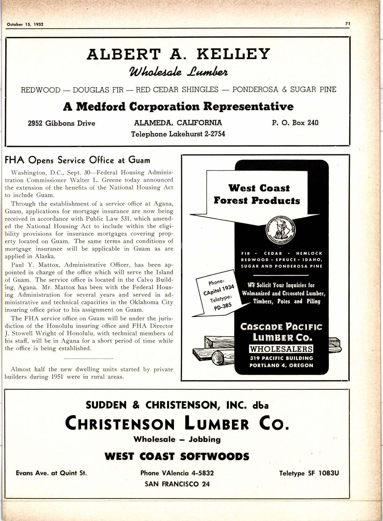 "The general level of industrial activity during September reached a new high since World War II. The gradually increasing arms output, plus shortages caused in some lines by the long steel strike, practically guarantee a busy fourth quarter for most industrial concerns. The industrial demand for lumber should be good.
