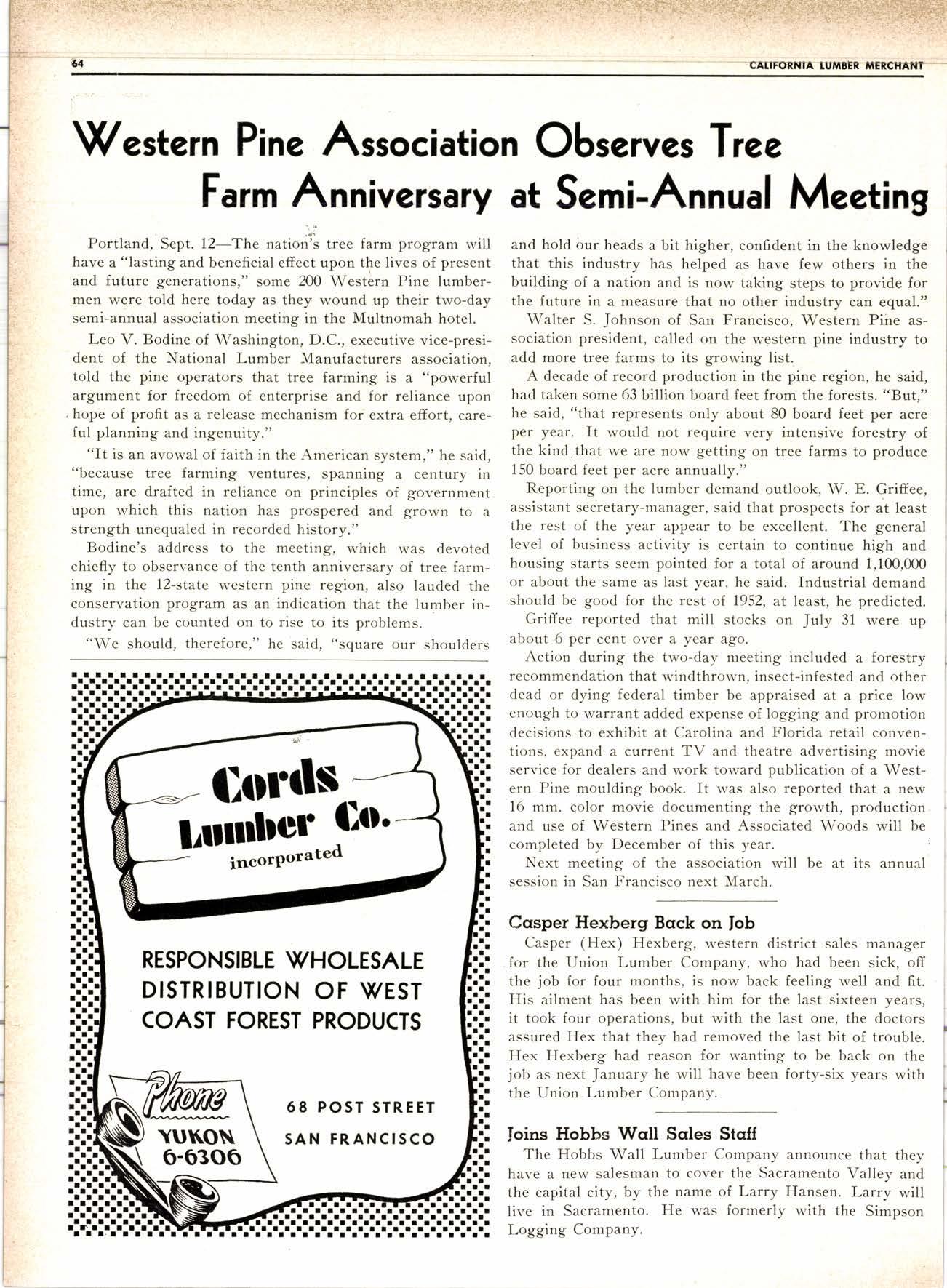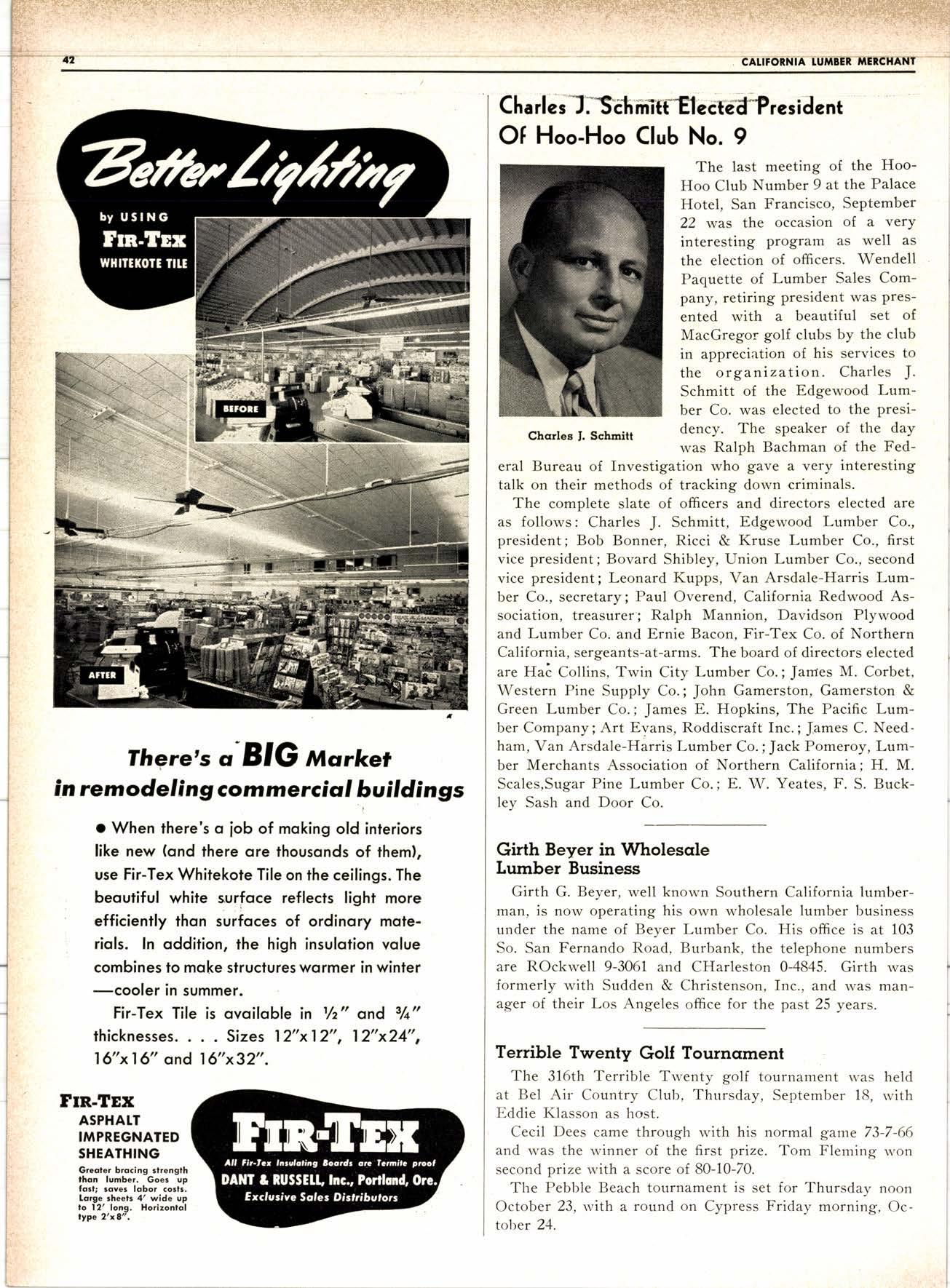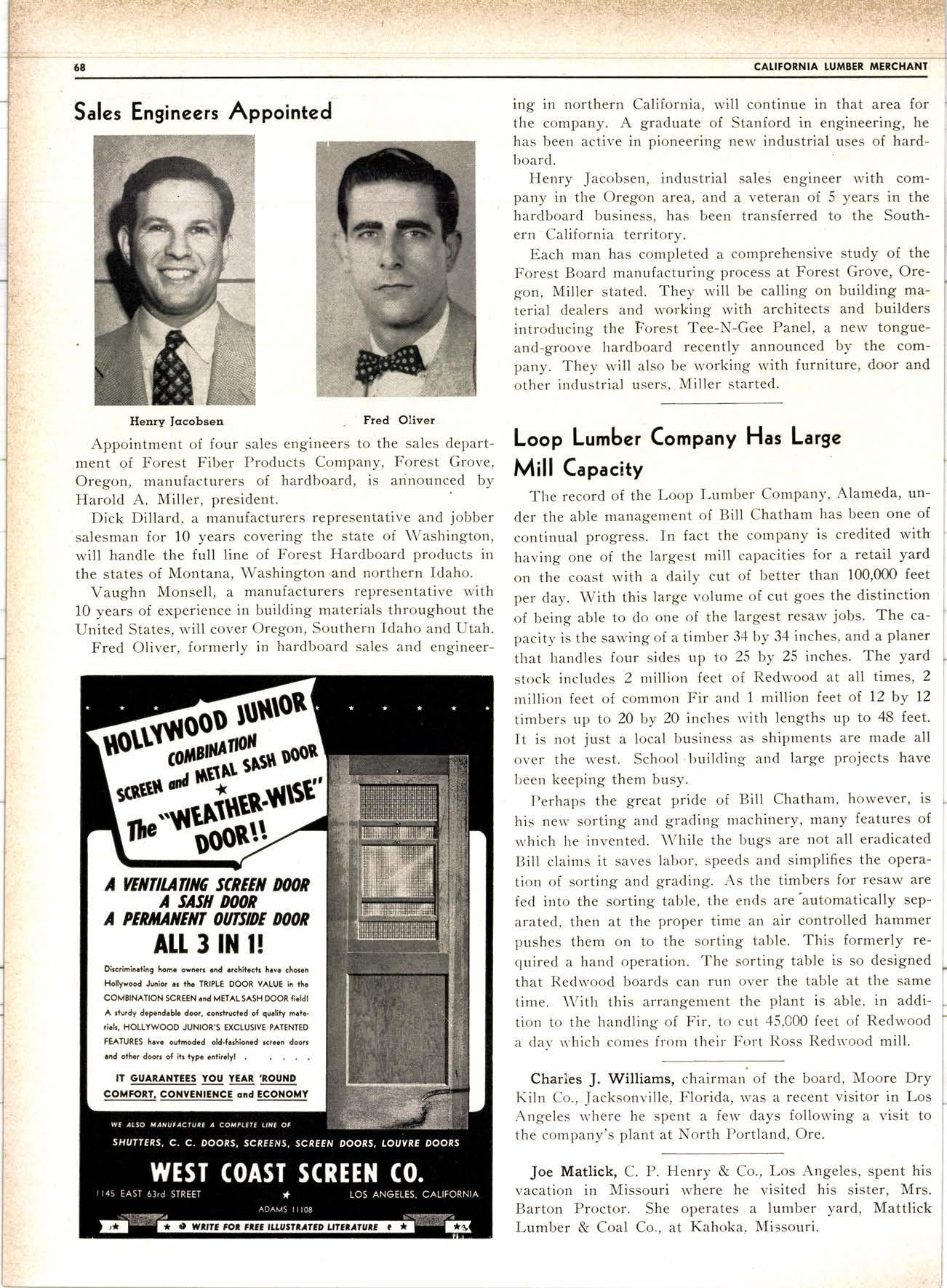 Frcd is well-known in both monufocluring ond dictribution of lumber. He helped ro plan ond conrtruct Triniry l ill in 1947. lriniry is now both o modern bandmill ond ploning mill is served by Norrh. wectern Pqcific Roilrood,