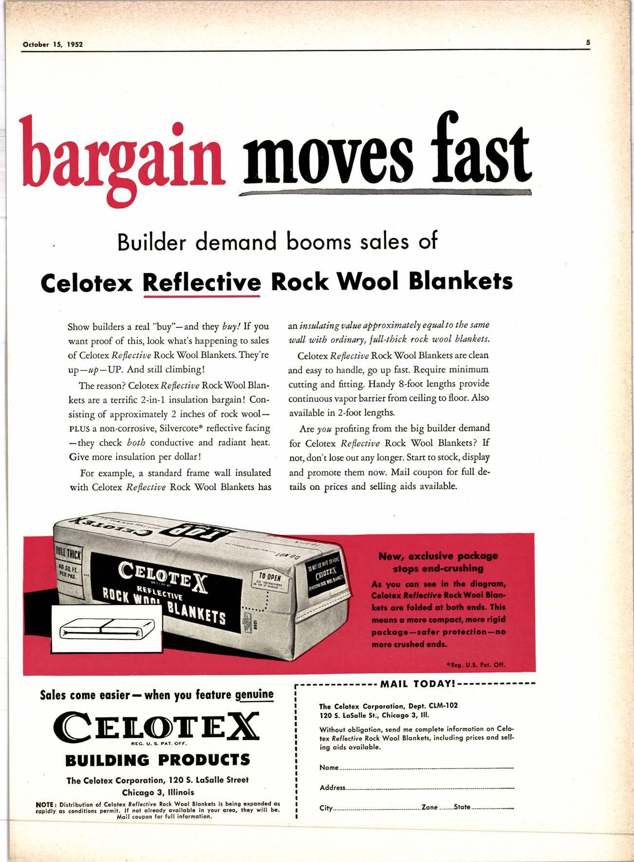 Show builders a real "buy"-and they buy! If you want proof of this, look what's happening to sales of Celotex Reflectiue Rock S7ool Blankets. They're up-up-UP. And still climbing!