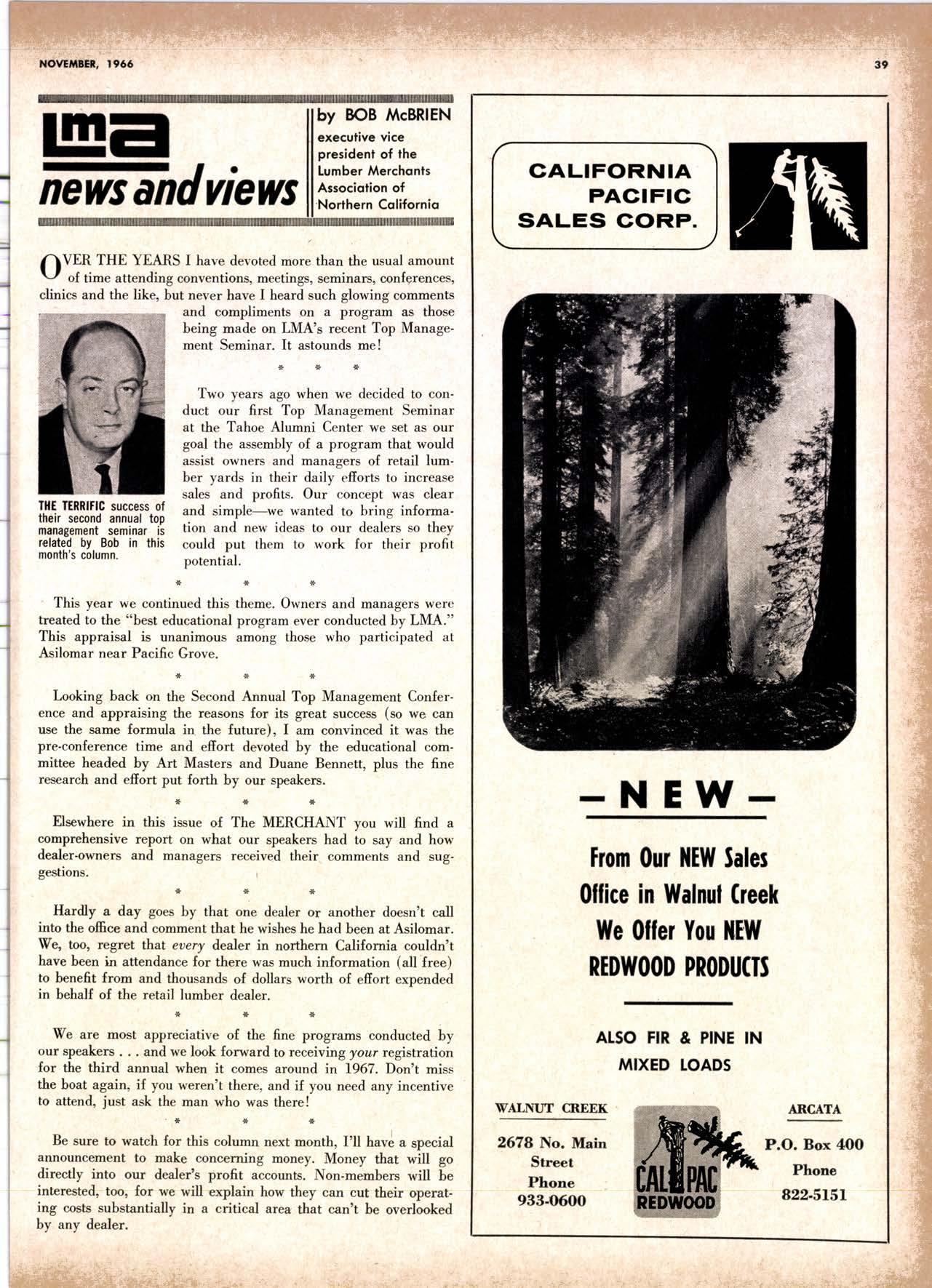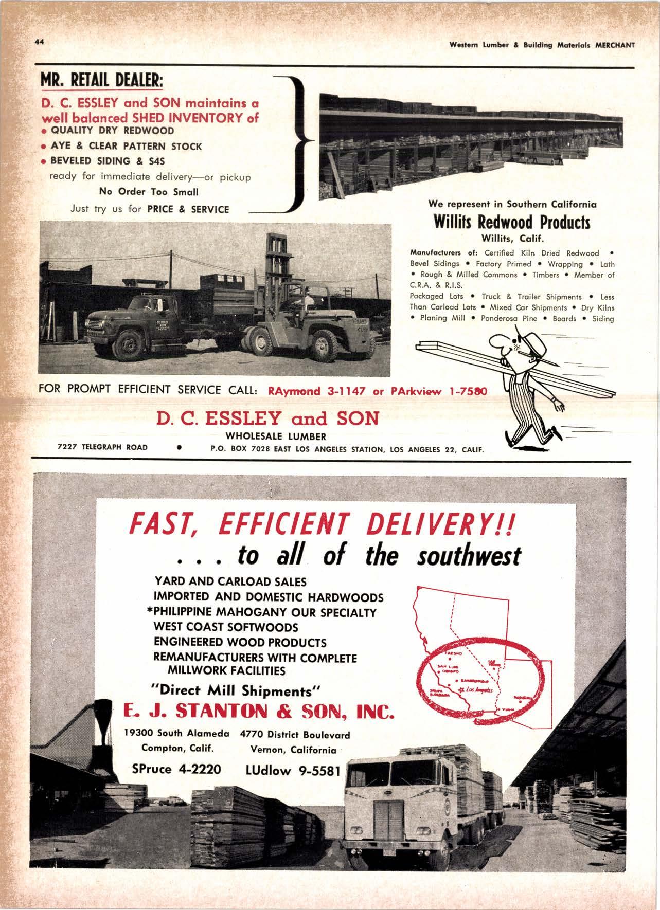 WESTERN LUMBER & BUILDING MATERIALS MERCIIANT is PUb- lished monthly aI 412 lVest Sixth Street, Ins Angeles, California 90014. Phone (213) MAdiBon 2-4565 or MAdison 2-0670 by California Lumber Merchant, Inc. Please address all correspondencc to office of Dublicalion. Se('ond-class postage rales Paid at Los Angeles, Celifornia. Advertising rates upon request.