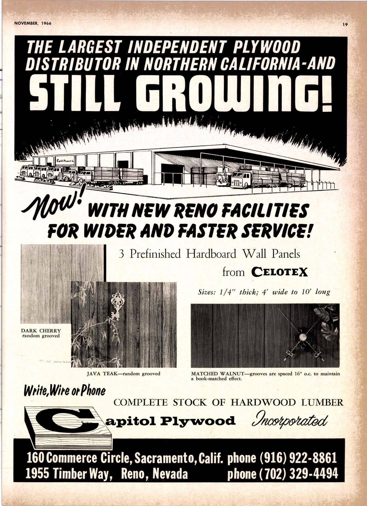 But on May 30, 1965, things weren't as rosy as they are today. Beaver Lumber president Fran Winkel spent most of that day watching a good part of his plant go up in smoke. The business at that time was in nearby San Leandro and covered some ten acres with several million hoard feet of lumber in storage.