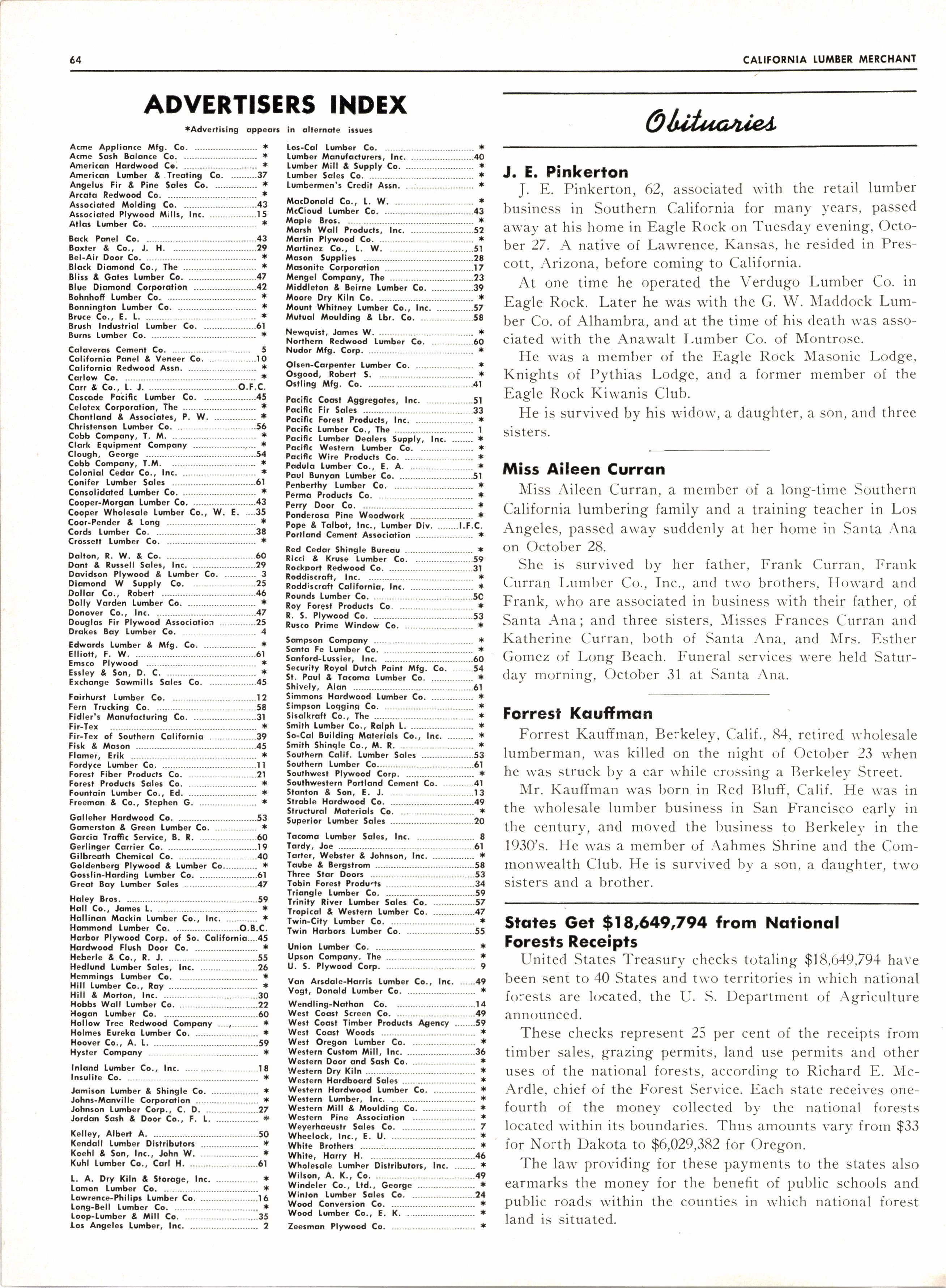 . DOUGTAS FlR, Co. of Colifornio . REDWOOD, PINE, 818 General Petroleum Bldg., Los Angeles 17, Calif. \i/l{lTE FIR Harry lil7hittemore, Gen. Mgr. MA.6-9l34'Teletype763
