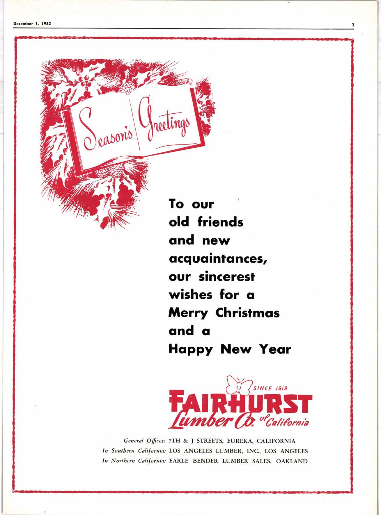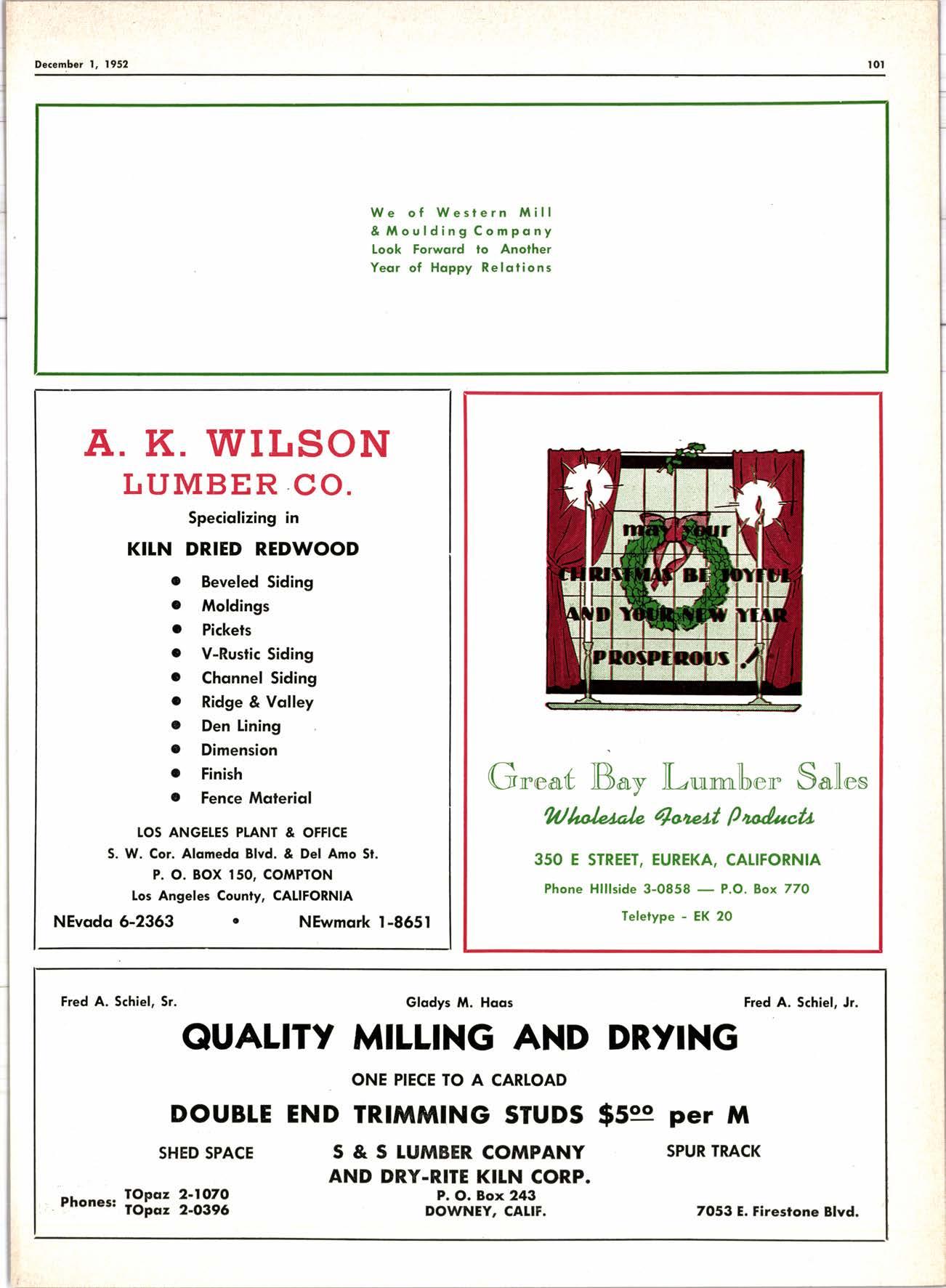 Vol. 3l No. ff Deccmb et l, 1952 /Vo* HARDWOO D H EADQUARTERS WEWISH YOU ALt A Specialittt in,., CABINET HARDWOODS (Foreign and Domcstic) K D Redwood Finish FTOORING DOWELS (Display Carton paclced) HEAVY MAPTE sAN FRANCISCO 24 2150 Ookdole Ave. Afwoter 8-l/NtO Esrobfished OAKTAND I 5OO High Street ANdover l-l600 | 872 PHILIPPINE MAHOGANY (Boards and Paneling)