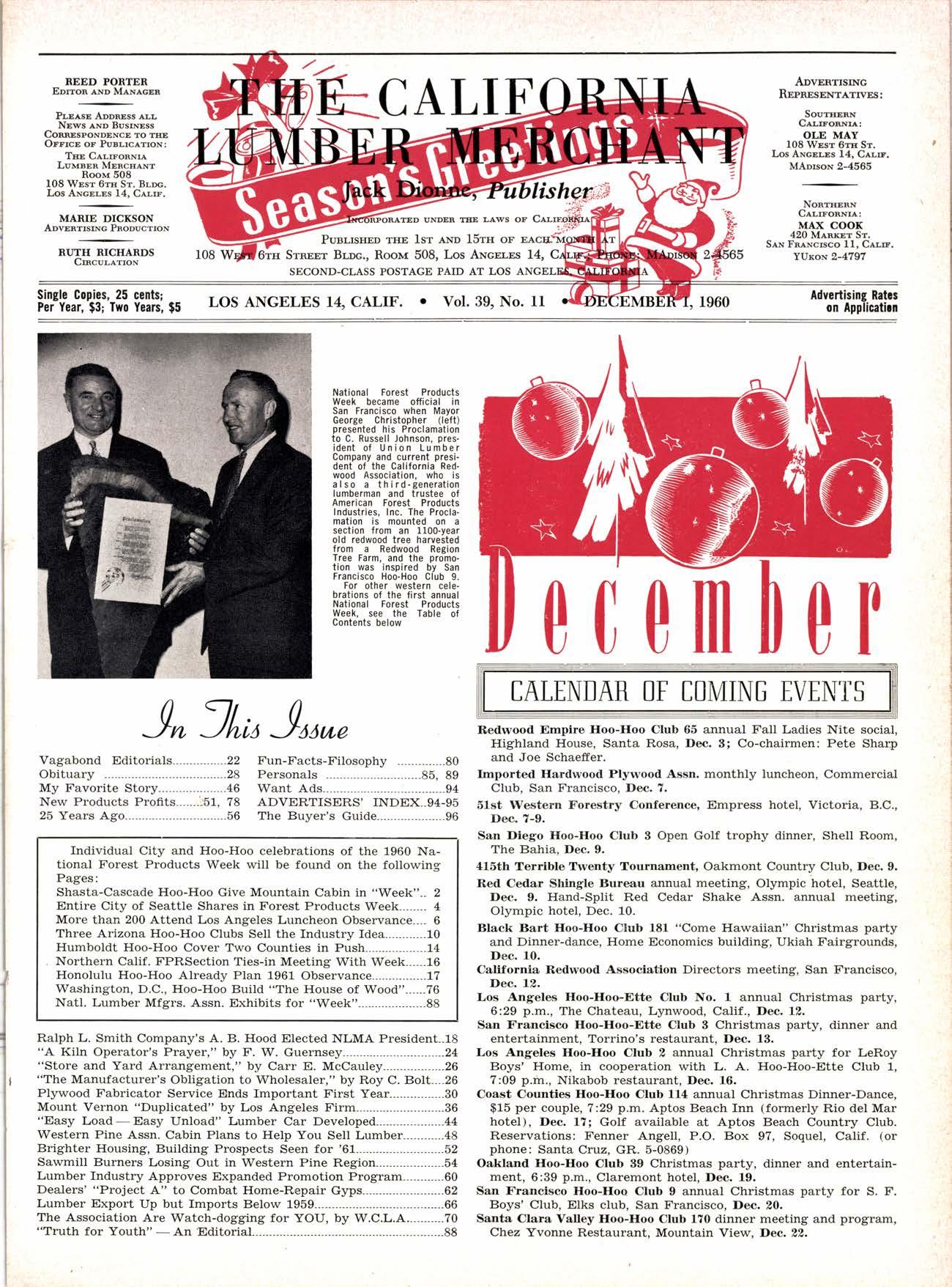 The plea for co-operation more often receives passive ag:reement than action, but 1960 marks the year when the total forest industry of the nation finally got together in the first annual National Forest Products Week (Octobet t6-22). And of all the regional efforts made to glamourize and gain industry goodwill, probably none exceeded that of Hoo-Hoo Club 133, Redding, Calif.