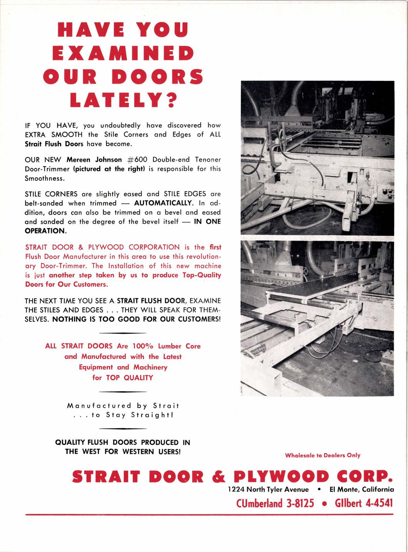 THE NEXT TIME YOU SEE A STRAIT FTUSH DOOR, EXAMINE THE STII.ES AND EDGES . . . THEY WIIL SPEAK FOR THEMSETVES. NOTHING IS TOO GOOD FOR OUR CUSTOMERS!