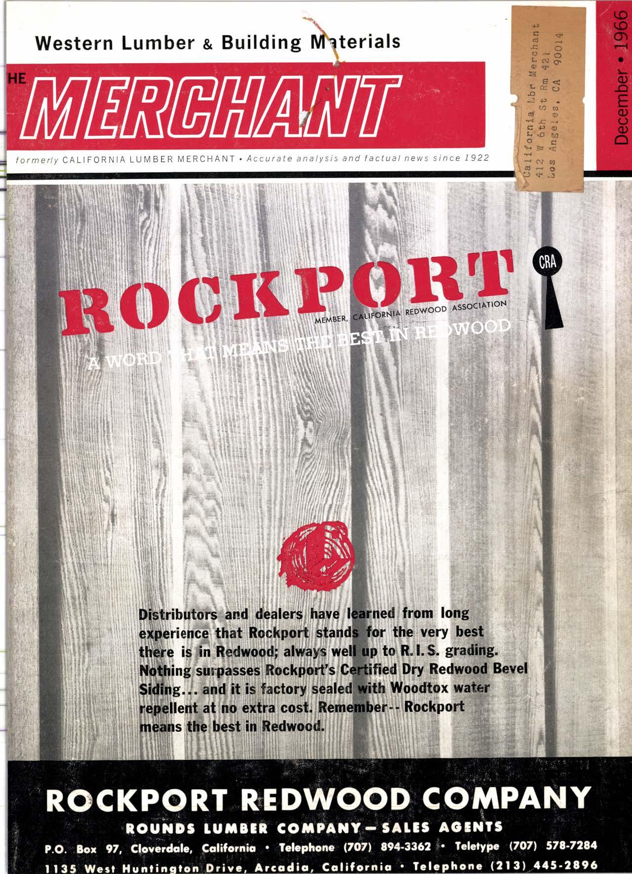 Change of Address-Send subscrlp- tion orders and address changes to Clrculation Department, Western Lumber & Bullding Materlals Merchant, 412 West Sixth St., Los Anseles, CaIlf. 90014. Include address label from recent issue if possible, plu.s new address, zone numDer or zlD code.