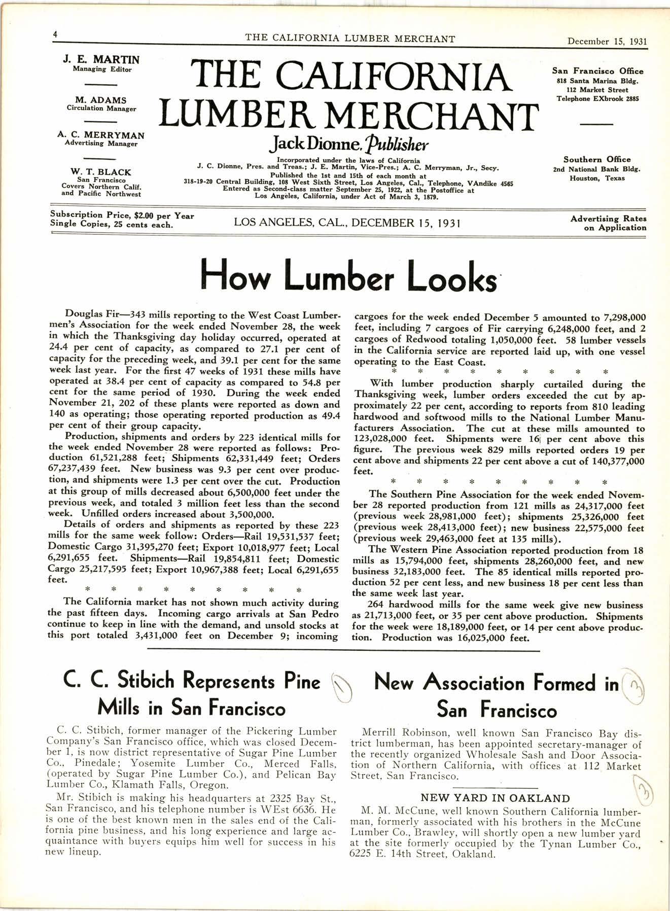 ^ C. C. Stibich, former manager of the Pickering Lumber Company's San Francisco office, which rvas closed December 1, is now district representative of Sugar Pine Lumber Co., Pinedale; Yosemite Lumber Co.. Merced Falls. (operated_by_Sugar Pine Lumber Co.), and Pelican Bay Lumber Co., Klamath Falls, Oregon.