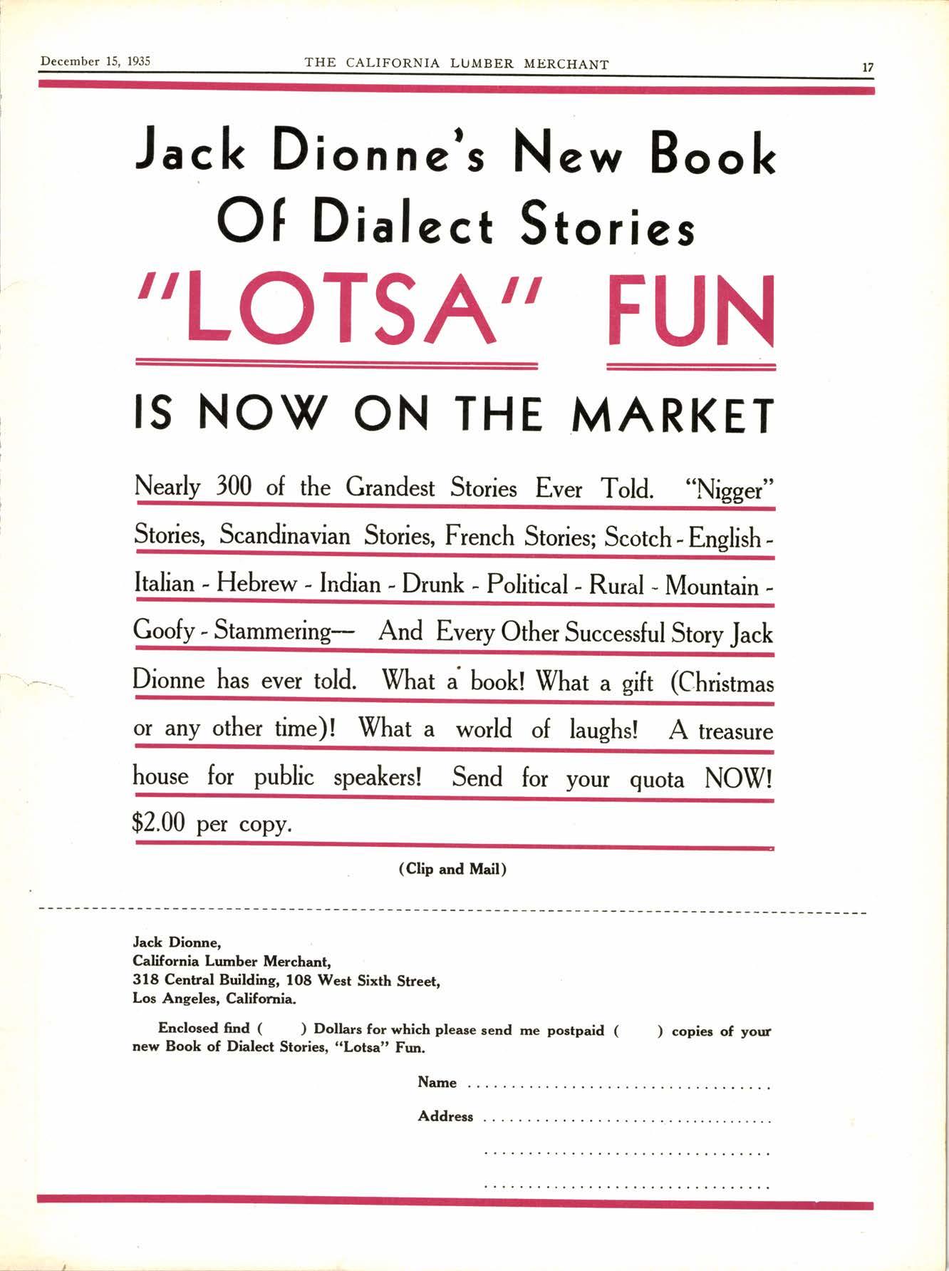 Jack Dionne, California Lumber Merchant, 318 Central Building, lO8 West Sixth Street, Los Angeles, California-
