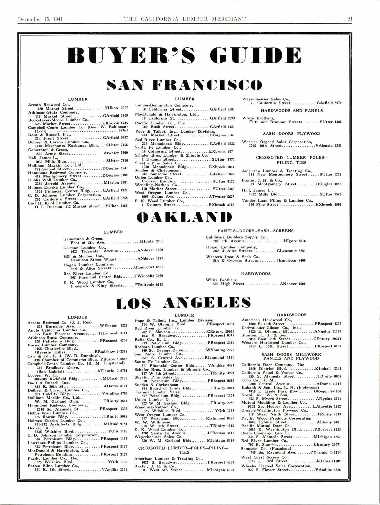 Cadwallader-Gibson Co., lnc., 3626 E. Olympic Blvd.............ANgelua lll6l Stanton. E. J. & Son, 2050 East 36th Str$t ........,...CEntury 29211 Western Hardwood Lumber Co.. 2014 E. lsth Street,,..........,..PRospect 6t6l