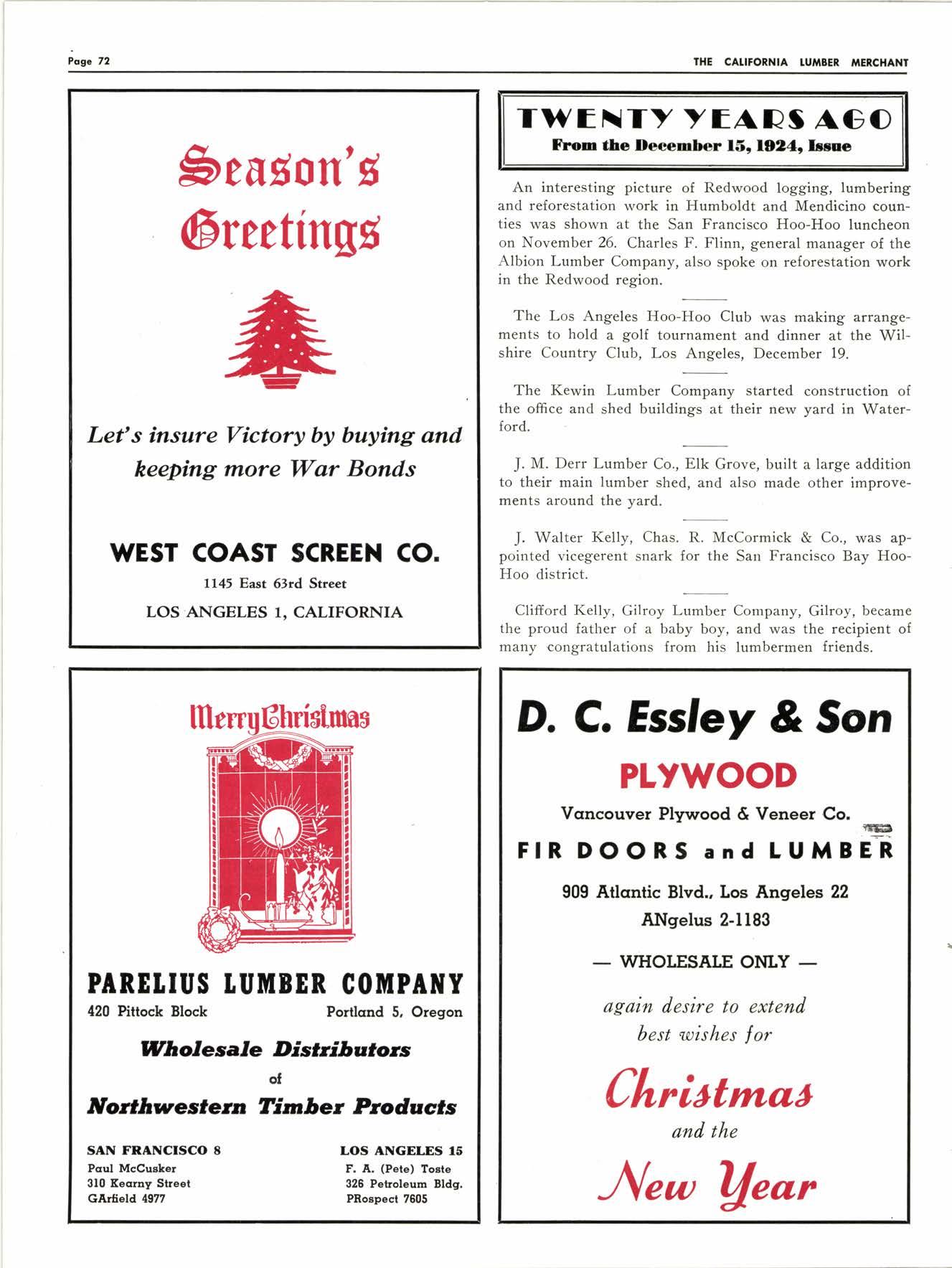D. C. Essley & Son PLYWOOD Vcrncouver P\wood & Veneer Co, ,*u, FIR DOORS and LUMBET 909 Atlcntic Blvd., Los Angeles 22 Al{selus 2-t183WUOUSAIE ONIY again desire to extend best u)ishes f or Chrifima, and the eu) l/no,