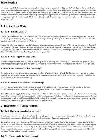Ifyou'veeverskilledwarmwaterwoes,youknowthewayproblematicitcouldpossiblybe.Whetherthisisalackof warmwater,inconsistenttemperatures,oratypicalnoisescomingfromyourrefrigerationequipment,thesedisorderscan disruptyoureverydayrecurringandgoawayyoufeelinghelpless.Butworrynot!Inthisaccomplishedmanual,wecan explorethecommonlyusedissueswhichmaystandupinrefrigerationstructuresandgranttroubleshootinginformation tohelpyoudecidethem.Sotakeholdofacupoftea(orachillydrinkincaseyourwarmwaterisperformingup)and allow'sdivein!