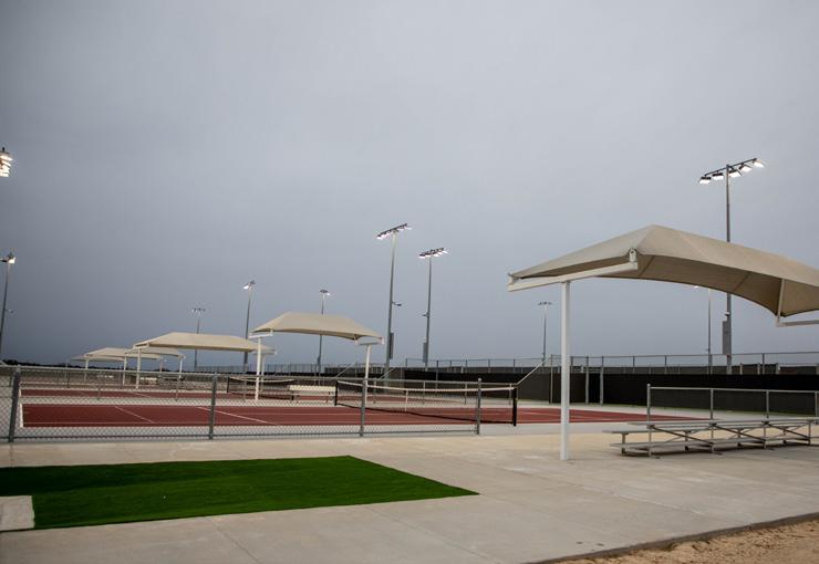 The courts are illuminated with Zone Large 78L LED fixtures and produce average light levels ranging from 65 to 75 footcandles, providing lighting suitable for tournament-level play.
