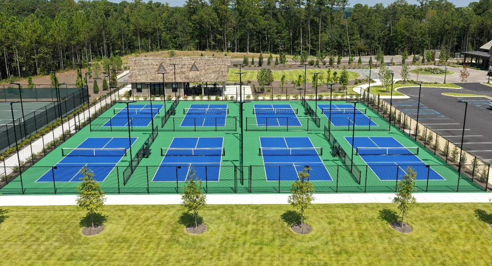 Recently, Quality Court Industries, LLC (QCI) built eight new outdoor post-tension pickleball courts at Benjamin Lake Club at Lake Martin, Alexander City, Alabama.