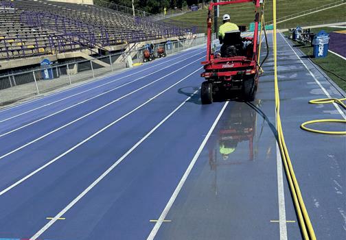 Also celebrating an anniversary overseeing both those offices is Karol Fair, who brings 35 years in the track and tennis industry to her old-school work ethics. She is tasked with oversight on a daily and weekly basis of the sales, operations and office management of the company, from project management, weekly reporting and meetings, employee and subcontract reporting, to helping create custom, oneof-a-kind, award-winning projects.