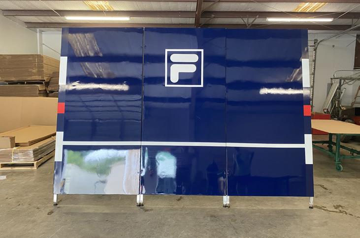 Illustrated is Bakko’s ability to customize backboards to customers’ needs to include colors, sizes and logos/decals.