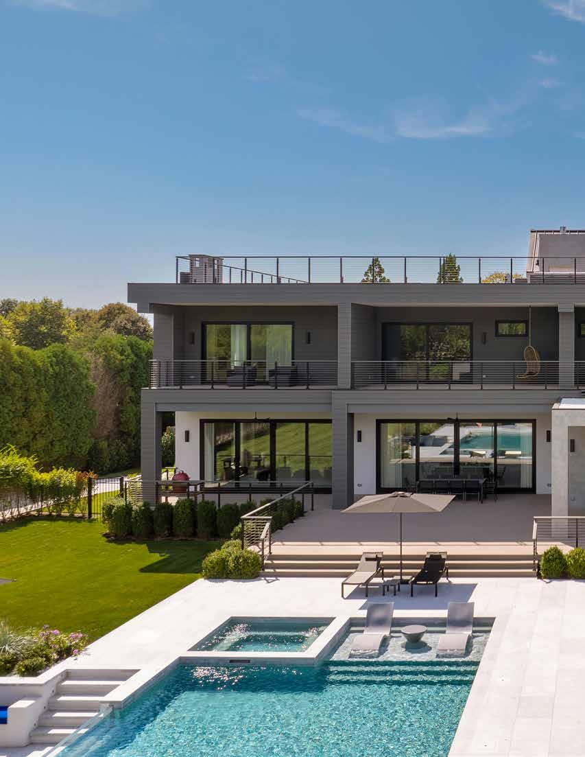 Equally breathtaking is the pool house that echoes the grandeur of the main residence, equipped with a spacious deck, outdoor shower, kitchenette, bath, and laundry.