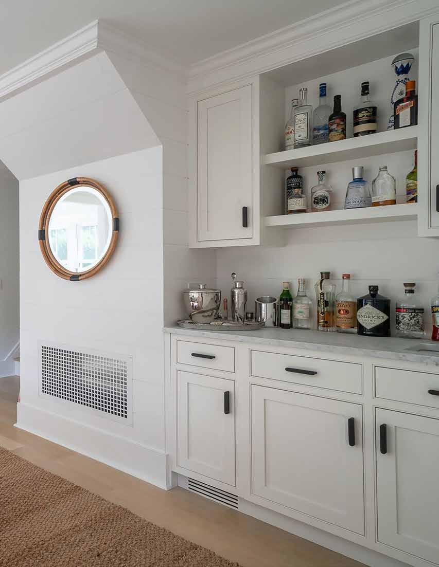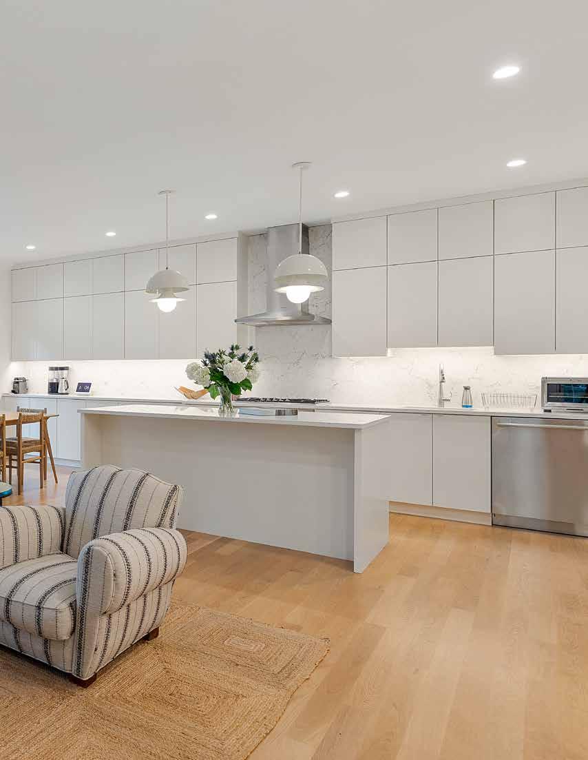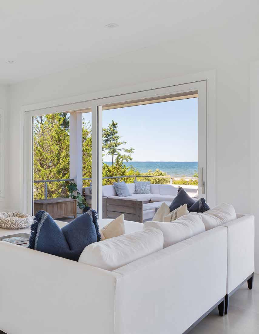 In a picturesque seaside setting, our nine-month project transformed a traditional beach house through a comprehensive tear-down and ground-up build. The design is anchored in a crisp white color palette, giving it a fresh, airy feel typical of a classic beachfront home. Central to this custom build is a stunning kitchen and specialty sliders which create a dramatic reveal of the breathtaking water views upon entering the house.