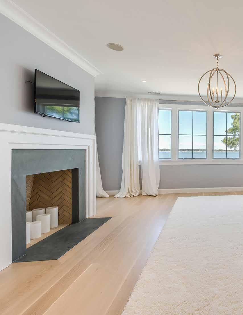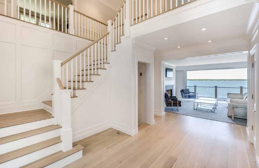 I love the open plan and the water views as soon as you enter the house. The level of detail in the coffered ceilings, panel work, and architectural staircase turned out beautifully.