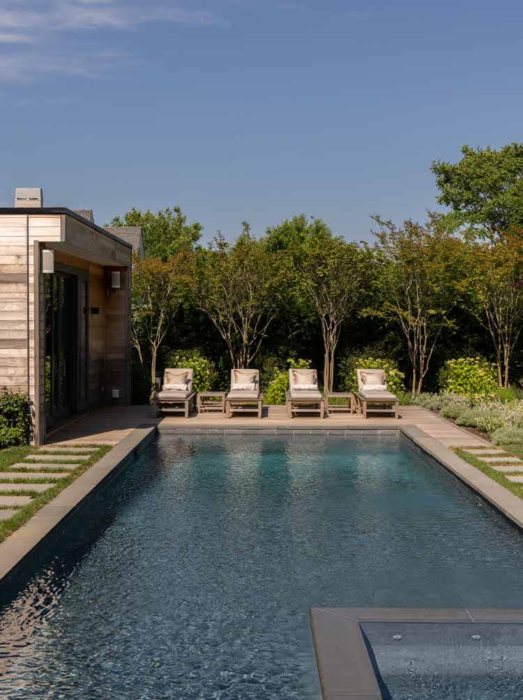 “We spent many summers vacationing in the Hamptons. When we decided to buy a home here, we knew we wanted to be in East Hampton due to its location relative to the beach and the other towns we frequent. We wanted a design that was very specific: contemporary outdoor Southern California living space.