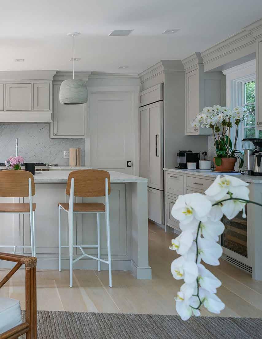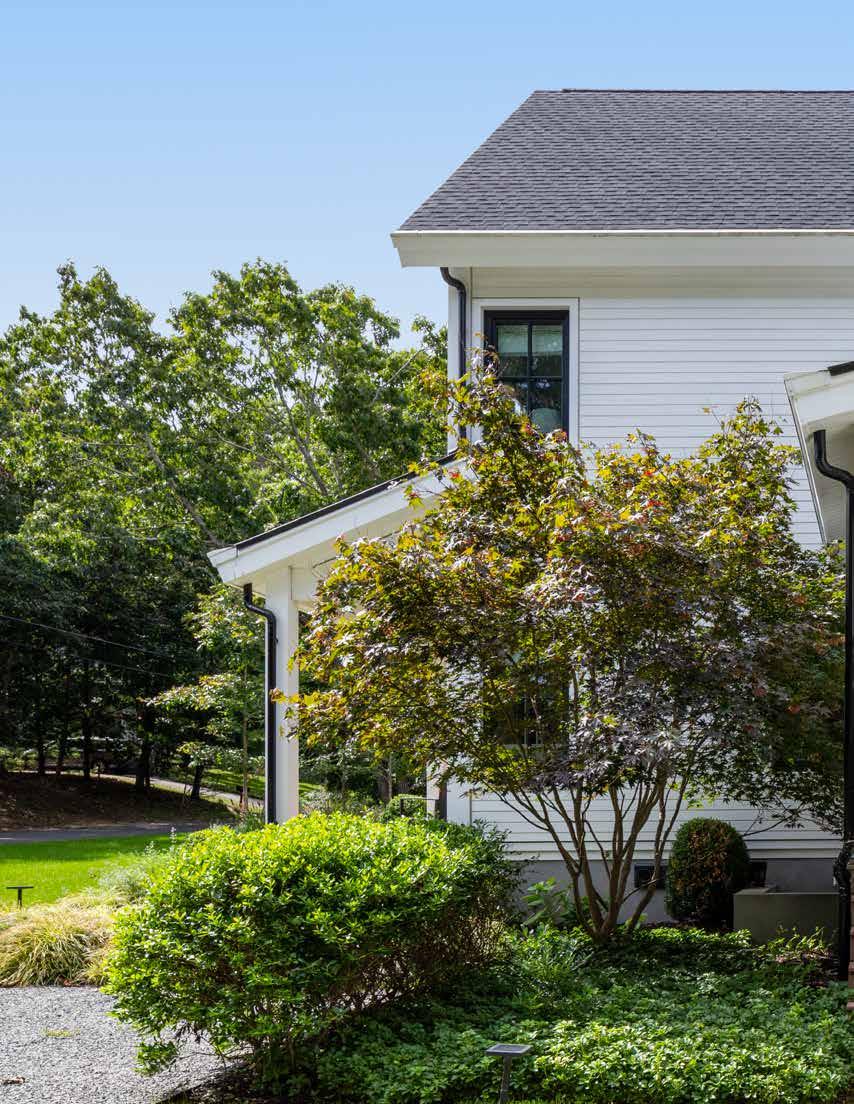 “We chose to build our home on Flying Point due to its location close to town, while still feeling like you’re a part of nature. The open layout of the kitchen and living area flows seamlessly to the outside, which is ideal for entertaining and enjoying warm summer days with our friends and family. We love the quality of the details throughout the home, from the beautiful wood flooring throughout to the high-quality fixtures in the kitchen and bathrooms. Our family most loves the large windows – these allow light to fill the house throughout the day, and it makes us feel surrounded by the landscape with the flowers and trees in our garden.