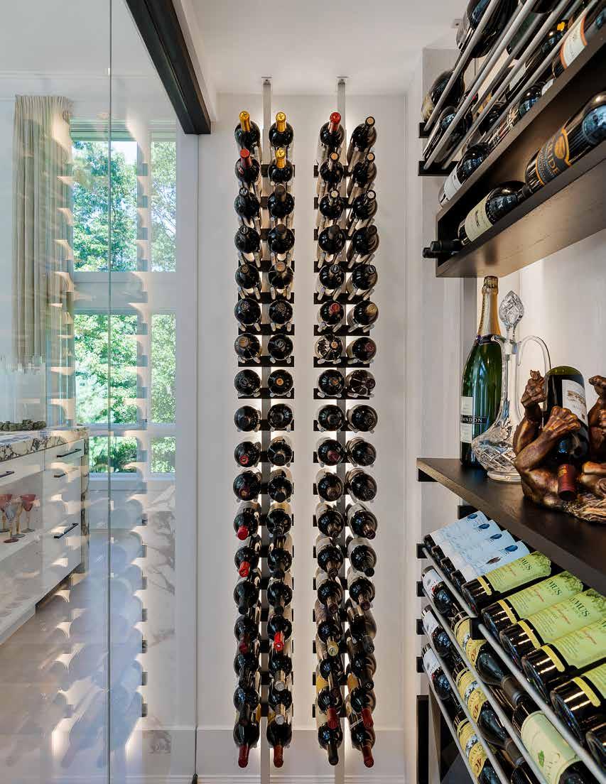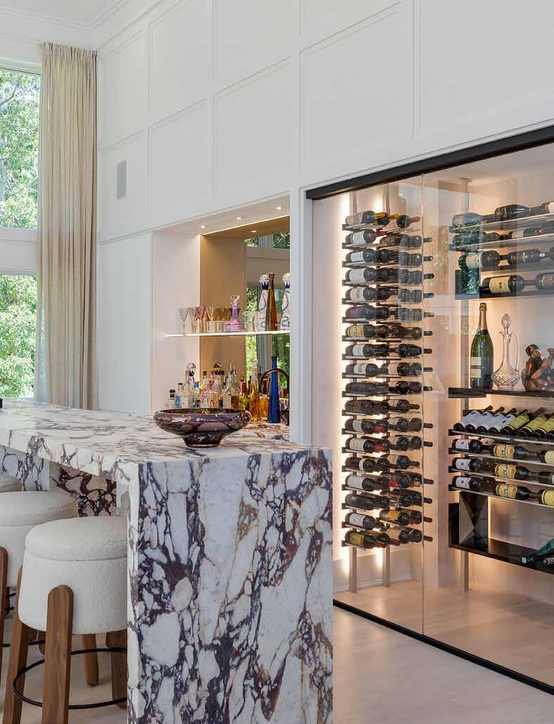 Our initial steps involved thorough planning with the design team, followed by the strategic relocation of ductwork and lighting to accommodate the wine room. The space was perfected with a custom glass door, advanced refrigeration for wine storage, and bespoke shelves, all harmoniously matched to the existing decor.