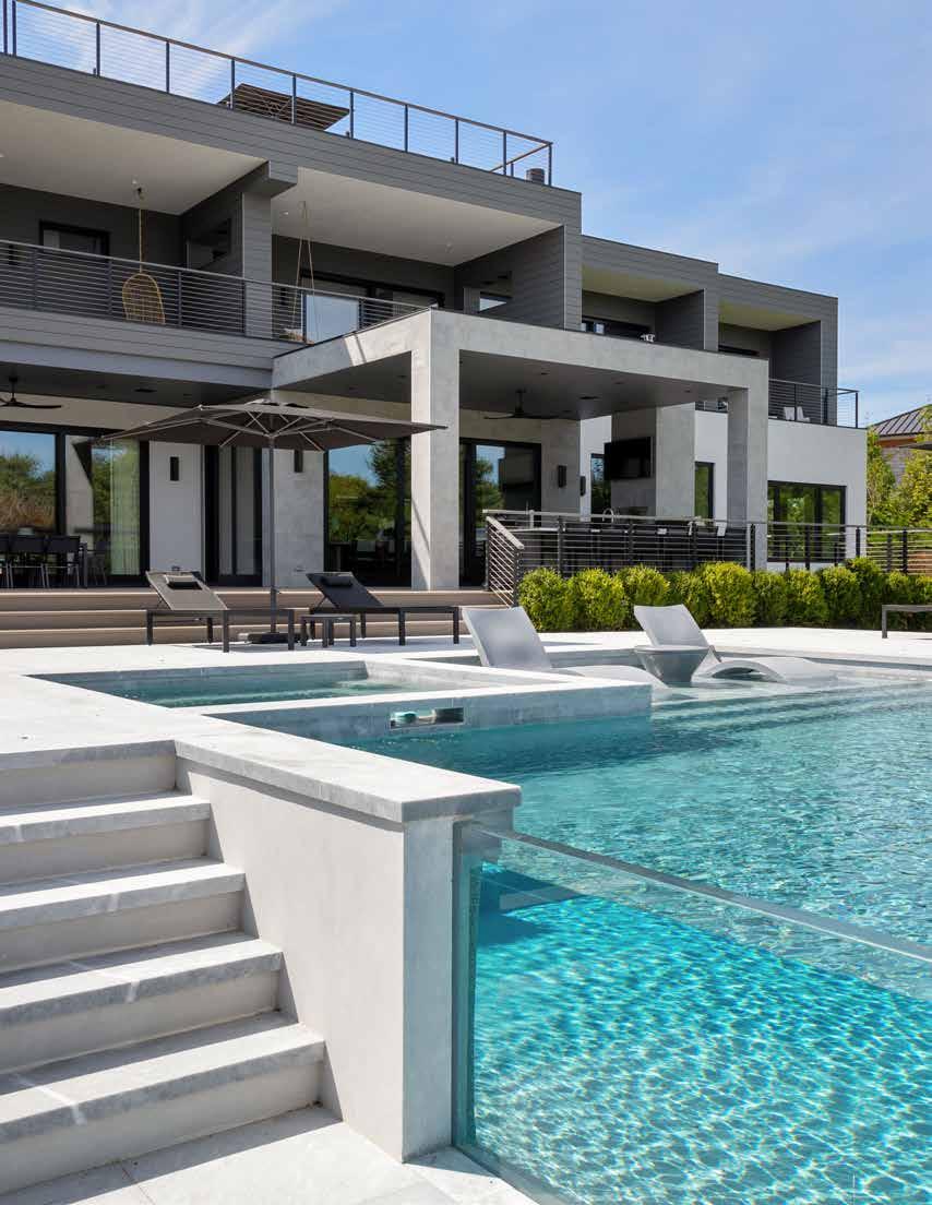 Large, custom-sized triple-pane windows are a standout feature, flooding the space with natural light and contributing to the home’s airy feel. The exterior boasts a unique stained cedar, complemented by a sleek flat roof and contemporary metal cable railing, lending the house a distinct, modern aesthetic. Adding to the allure is the inclusion of a pool and a pool cabana, which together create a private oasis for relaxation and entertainment. This build showcases our commitment to creating homes that resonate with modern lifestyles, emphasizing natural light, open spaces, and seamless transitions between indoor and outdoor living.
