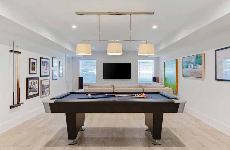 The second floor boasts a theater and state-of-the-art game room. Several smart features are integrated across the structure, including a Lutron system for lighting and shading control, enhancing both comfort and energy efficiency.