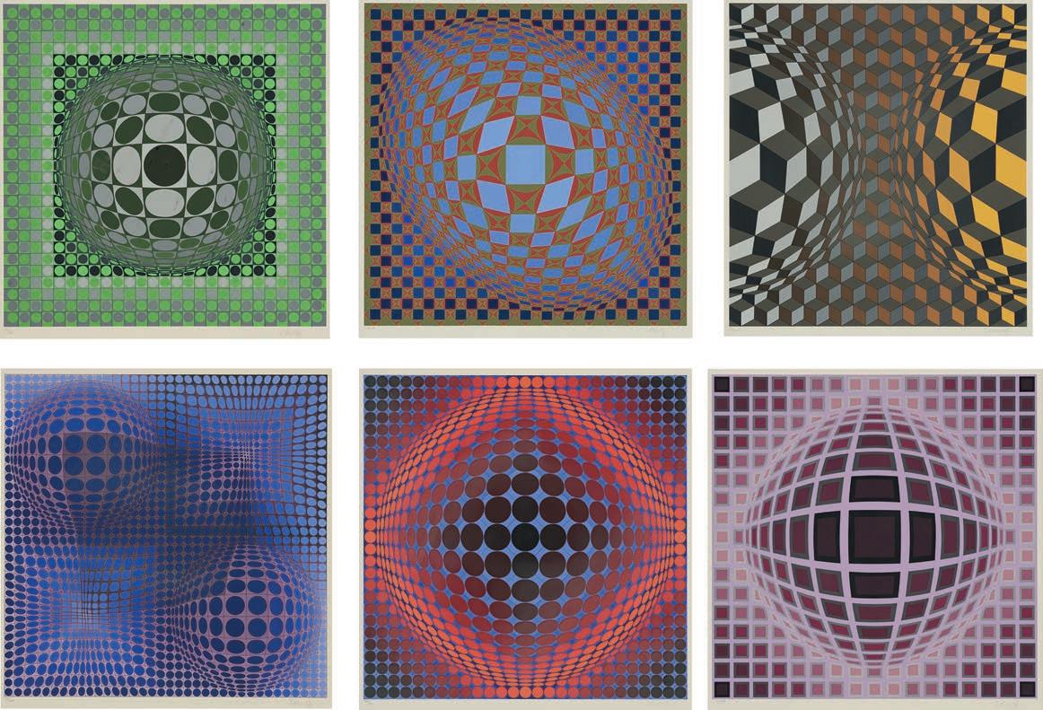 441. Victor Vasarely (France, 1906–1997) “The Louisiana portfolio”. Signed in pencil and numbered 155/275. The complete portfolio containing 6 serigraphs, 1985. Printed by Silium S.A and Atelier Arcay, Paris. Published by Galerie Börjeson, Malmö. 66 x 66 cm.
