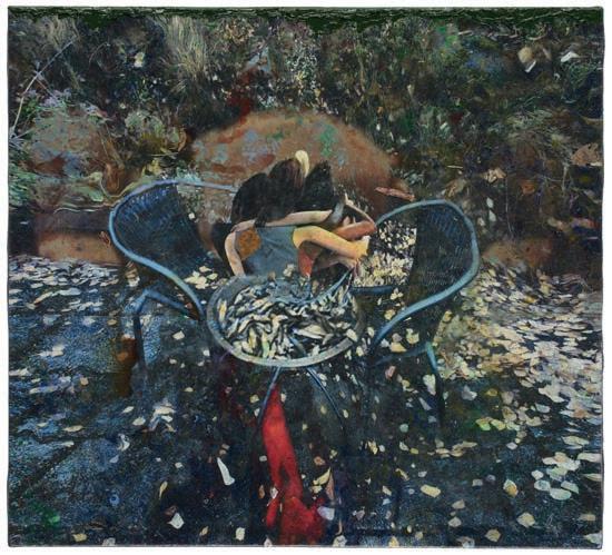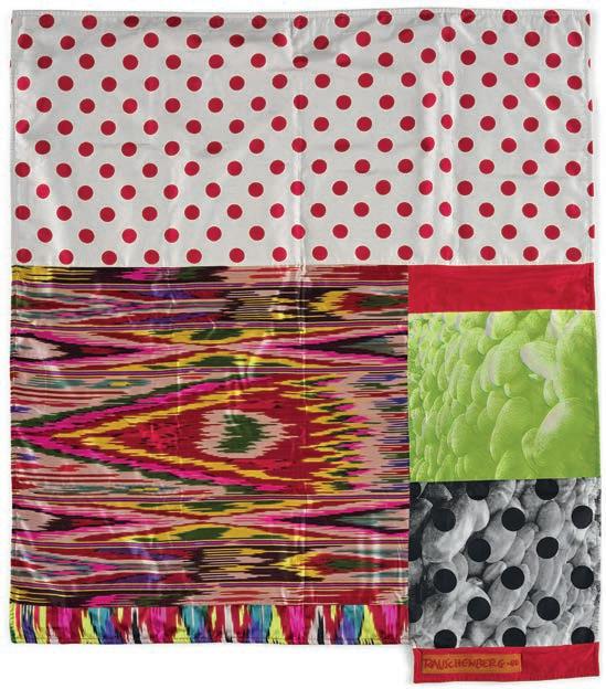 Embroidered signature and dated 88. Unique screen print and fabric collage, 1988. Numbered #21 with marker on machinestitched label verso. From an edition of 72 unique variations, published by Gemini G.E.L., Los Angeles. 124 x 106 cm.